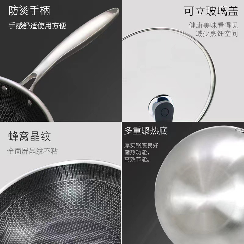 工場直送両面ハニカム316ステンレス中華鍋三層鋼無塗装ノンスティック鍋低煙フライパン