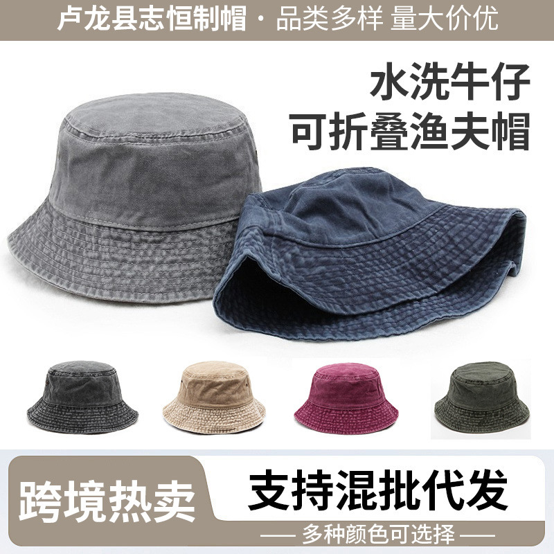 跨境水洗牛仔渔夫帽日常通勤帽户外防晒遮阳帽可折叠牛仔帽大帽檐