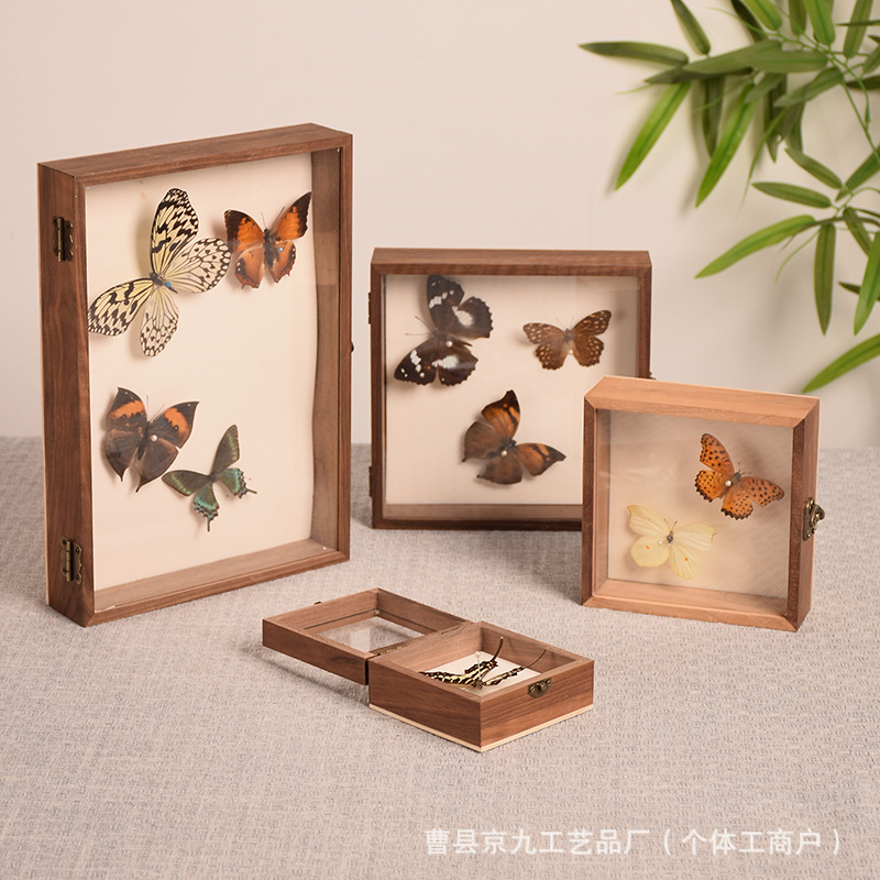 昆虫蝶標本ピンボックス松木実木ガラス標本枠diy手作り植物収納箱展示箱