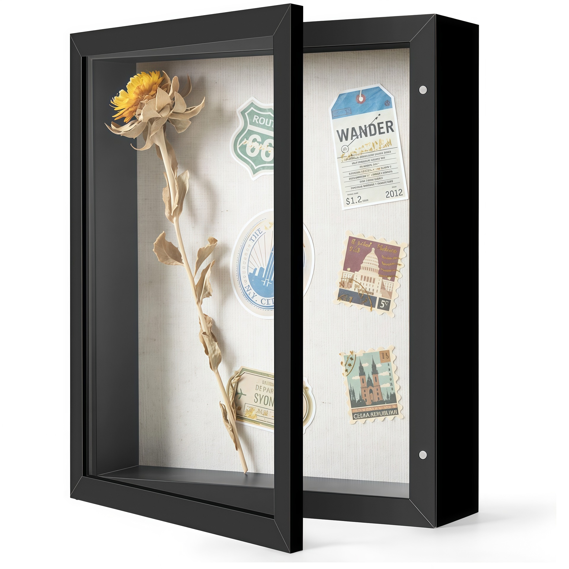跨境磁吸翻盖合页阴影盒木制干花标本收纳盒复古植物标本展示盒