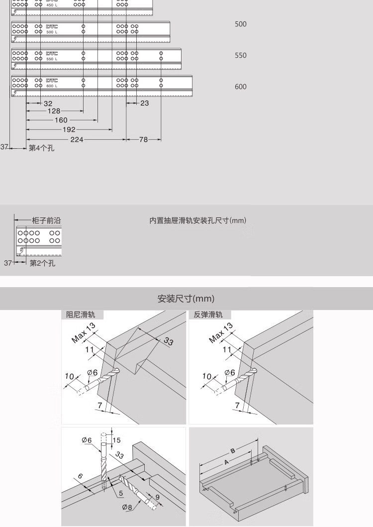 Dongtai DTC 引き出しスライドレール 3 セクションレール ダンピングバッファ 静音リバウンドレール スライドレール ハードウェア卸売 ボードタイプ