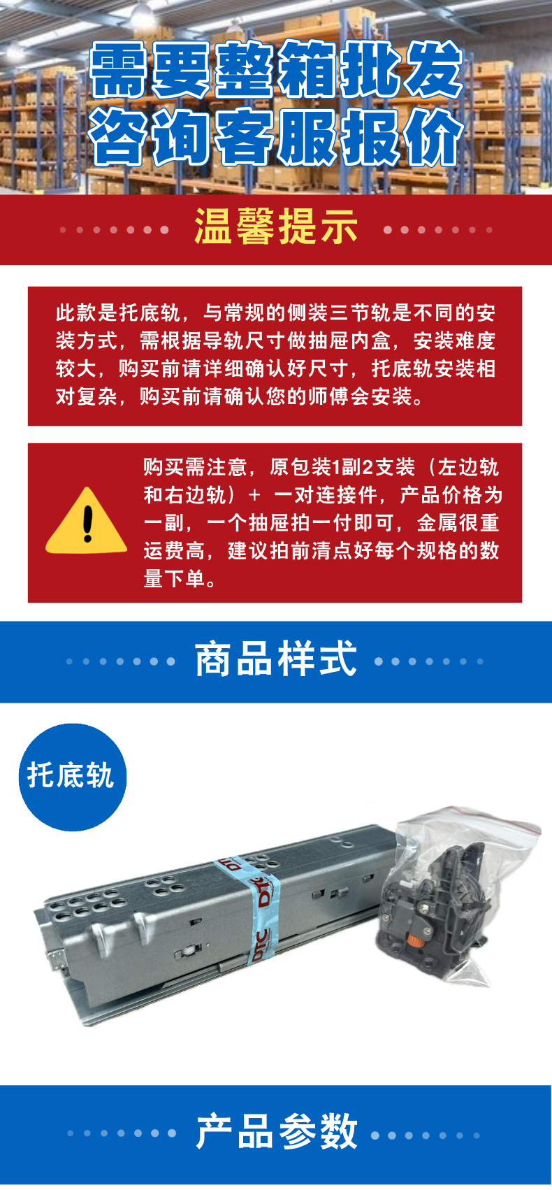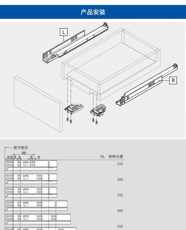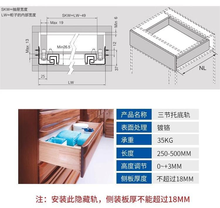 東泰DTCボトムレールSS8018ボードフル引き出し式引き出しレール金物キャビネットスライドレール厚型静音スライドレール
