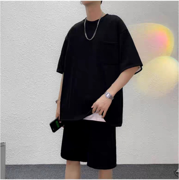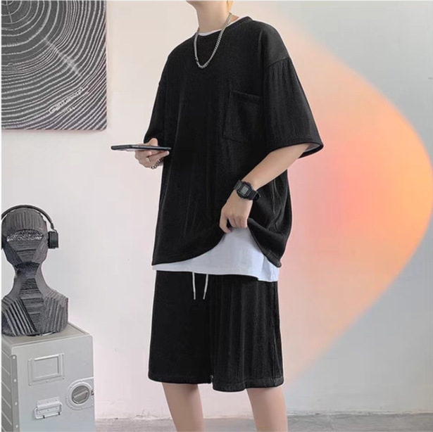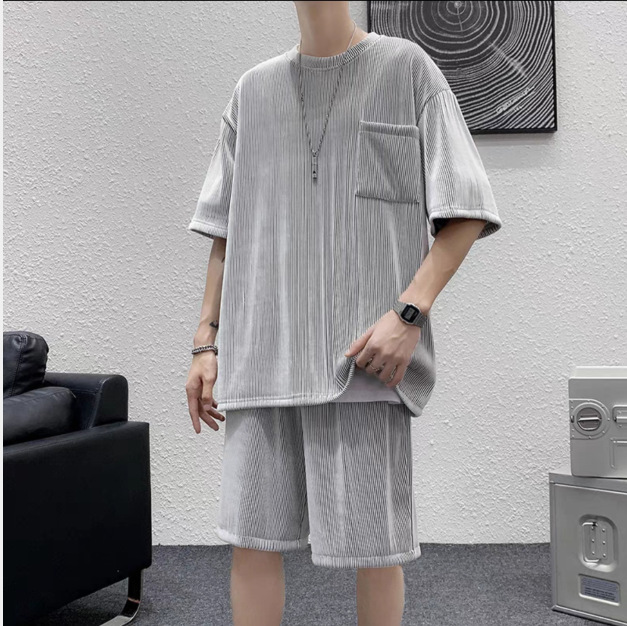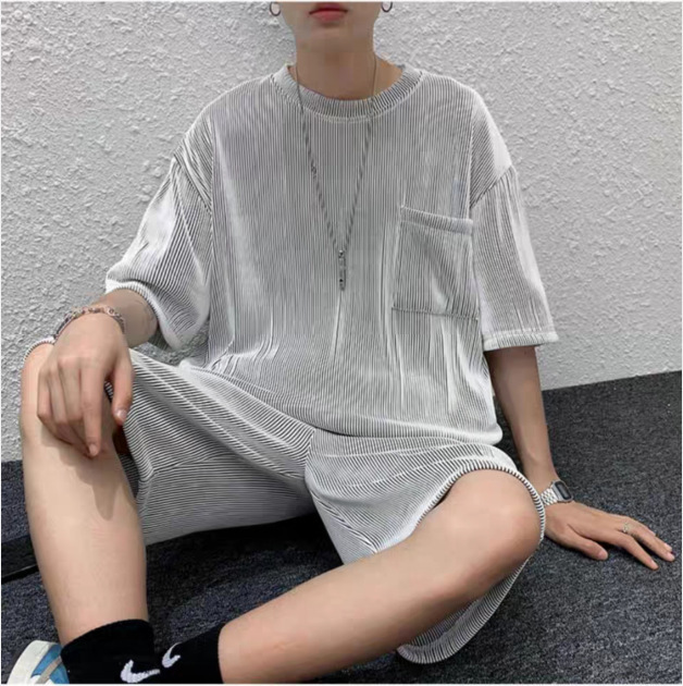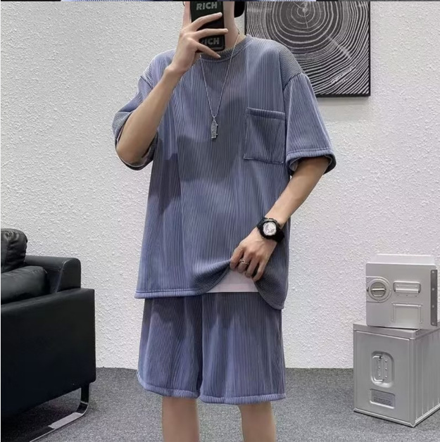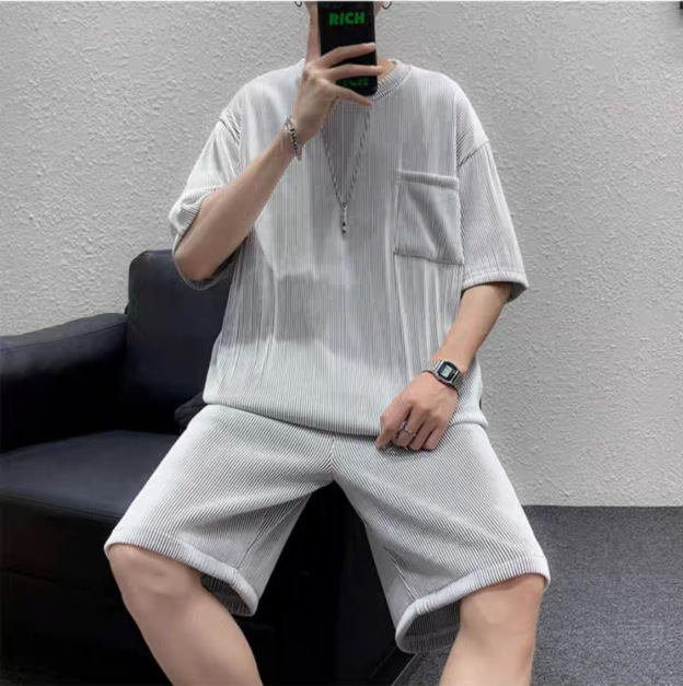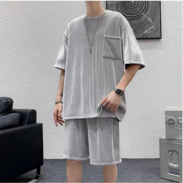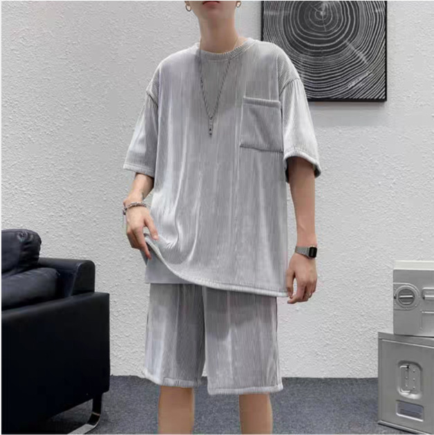 アイスシルクスポーツショーツスーツメンズ 2023 夏薄いカジュアル半袖ショーツメンズ速乾性服セット