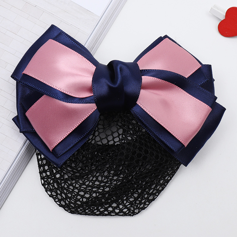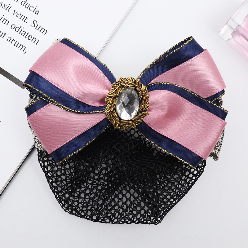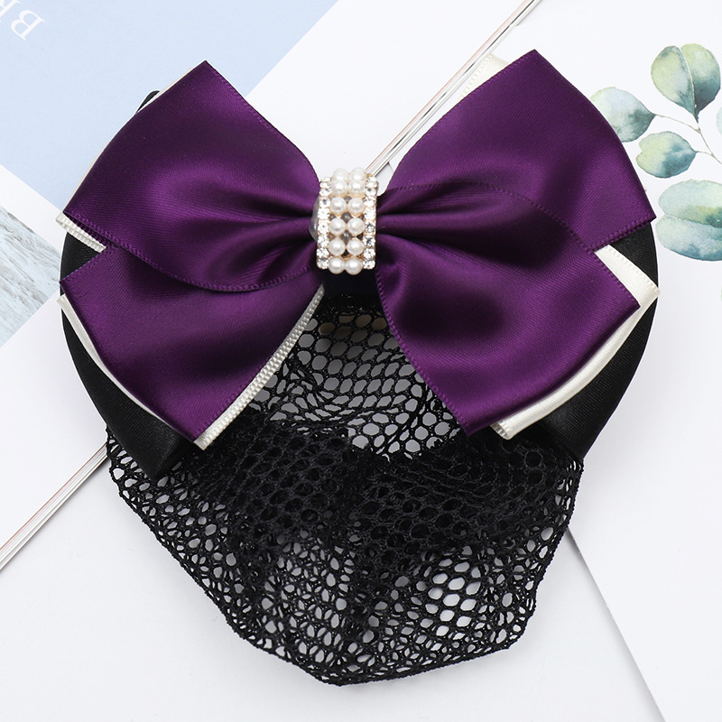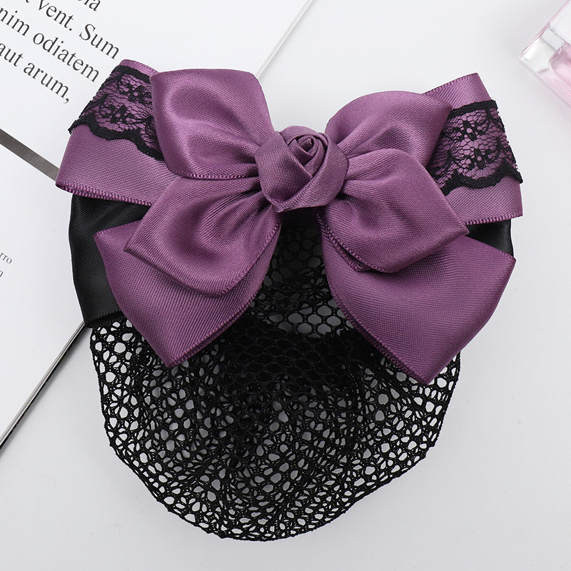 細いネットの頭飾りの髪飾りの看護師のホテルの銀行の蝶結びの従業員のヘアピンの紫色の職業の頭の花のネットの兜の女性の甘いです。