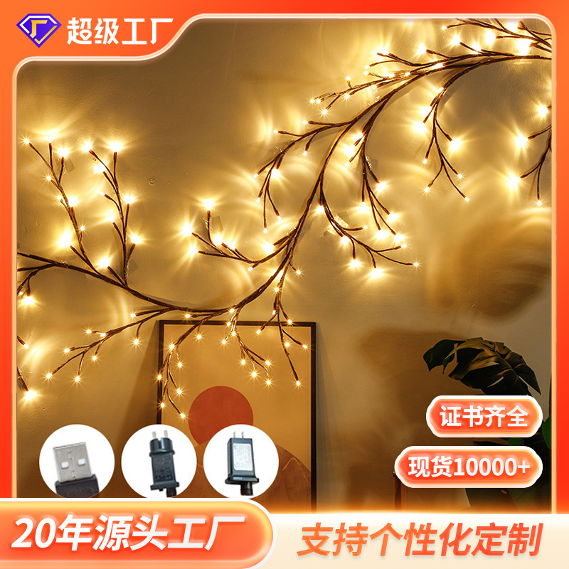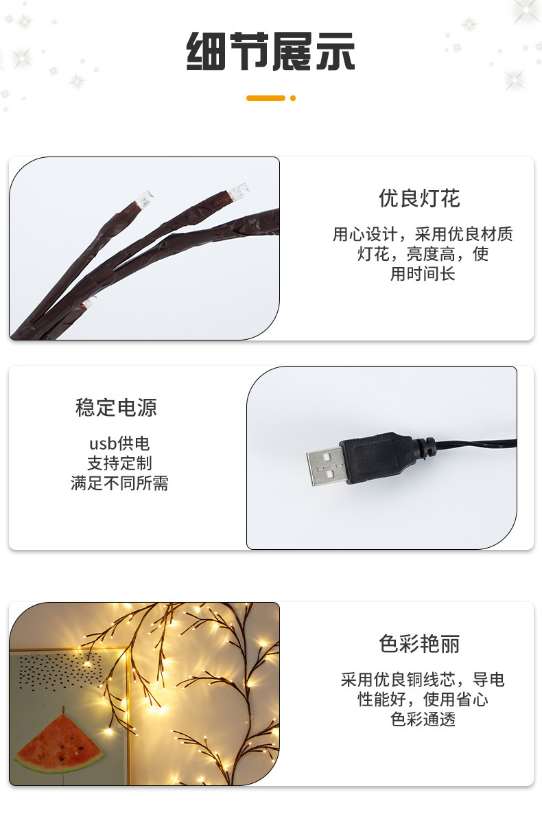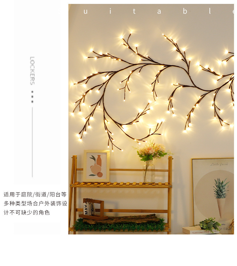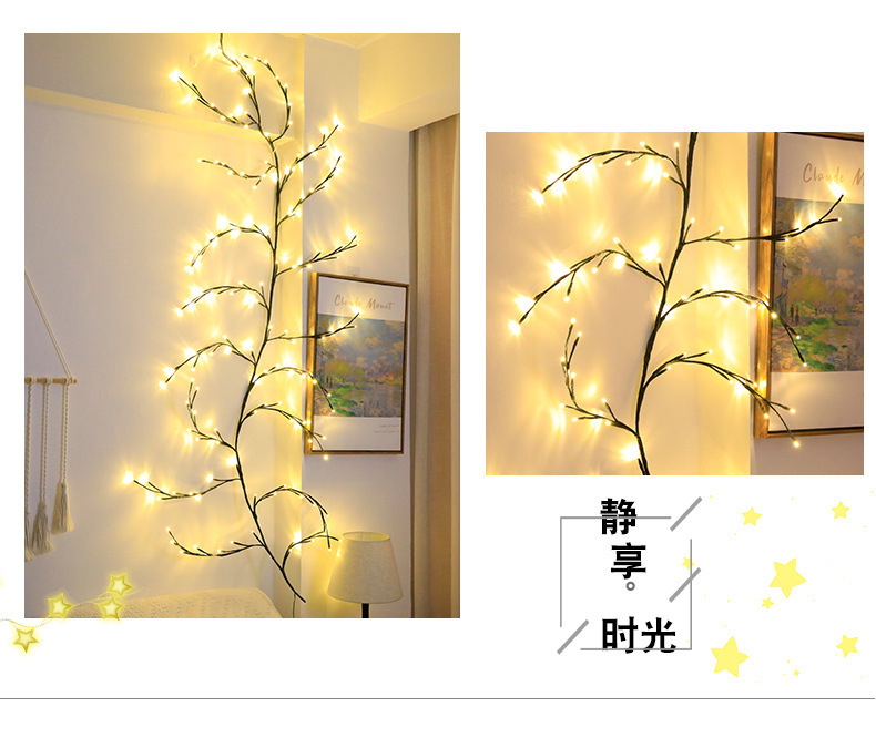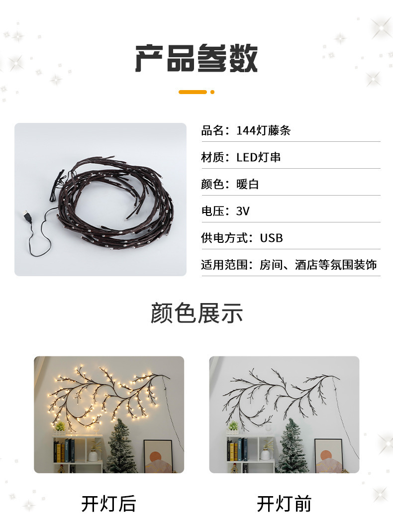 藤条灯串出货时为折起来包装的,买家收到货候可以根据自己的喜好摆设造型,这款灯为纯手工制作,如有乳胶水属于正常现象