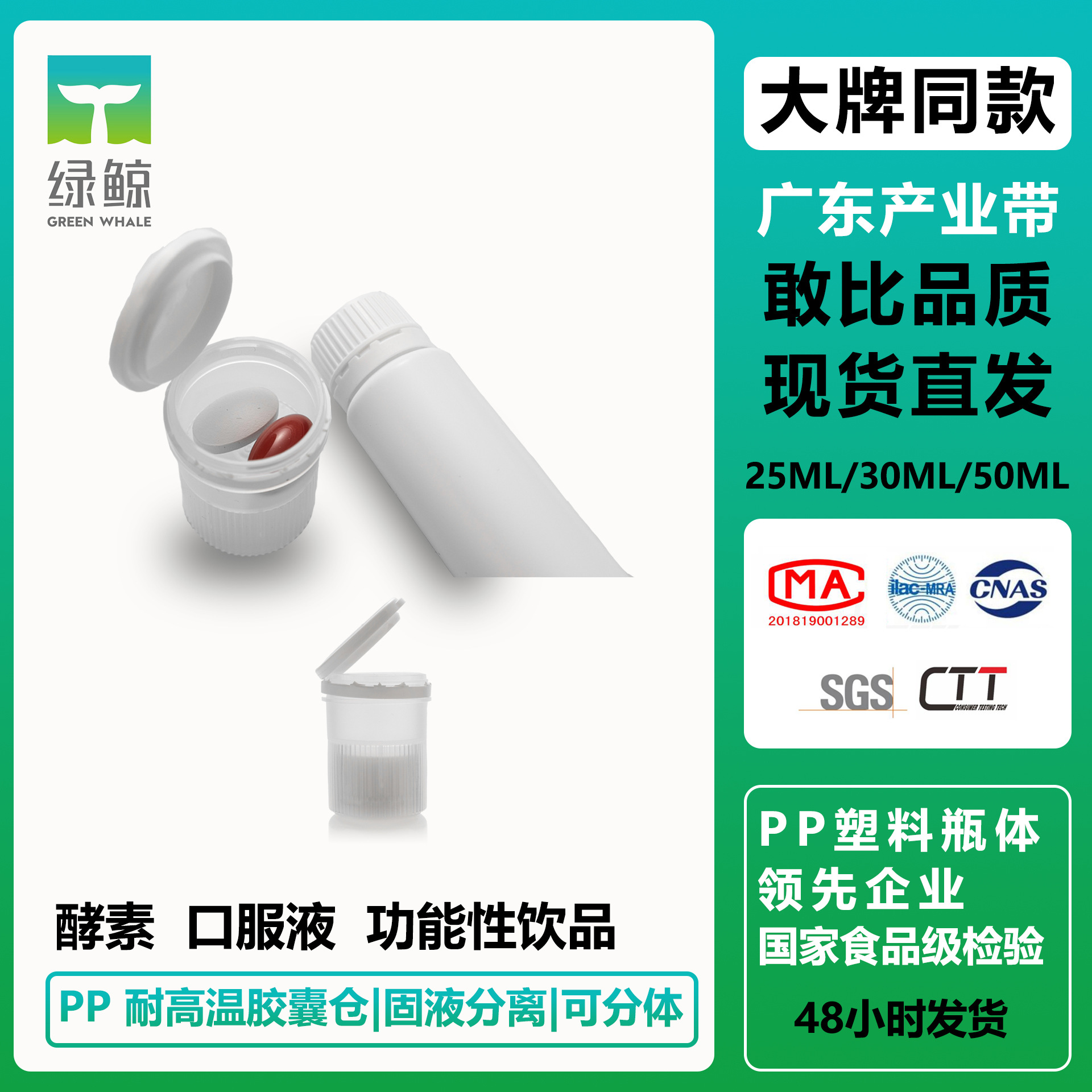 30ml口服液双仓矮胖瓶pp塑料耐高温胶原蛋白口服液瓶厂家定 制