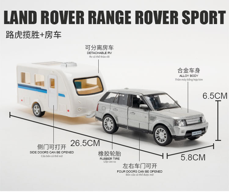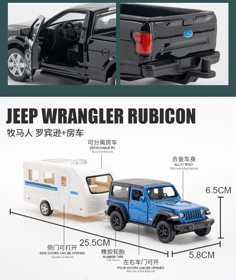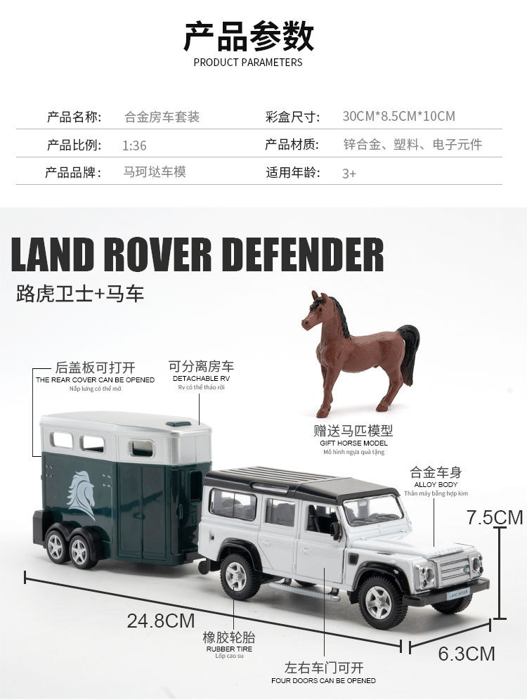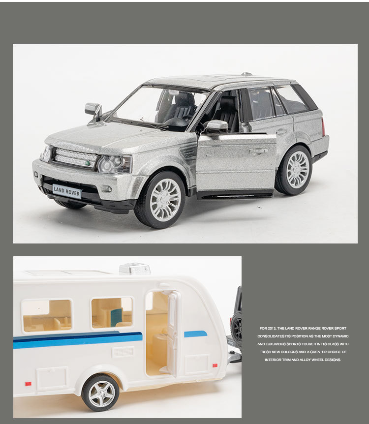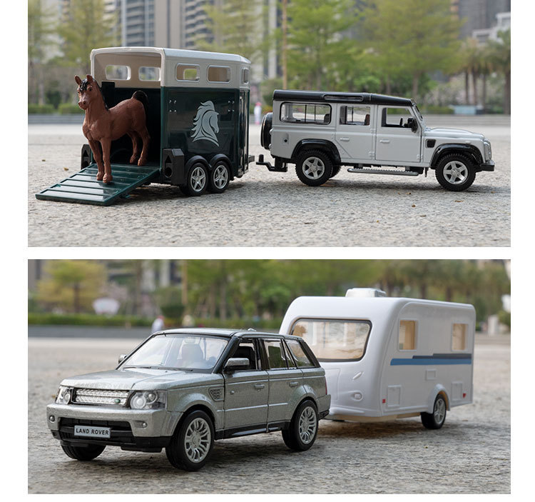 正版1:36路虎猛禽皮卡合金仿真越野车拖挂房车模型儿童男孩玩具车
