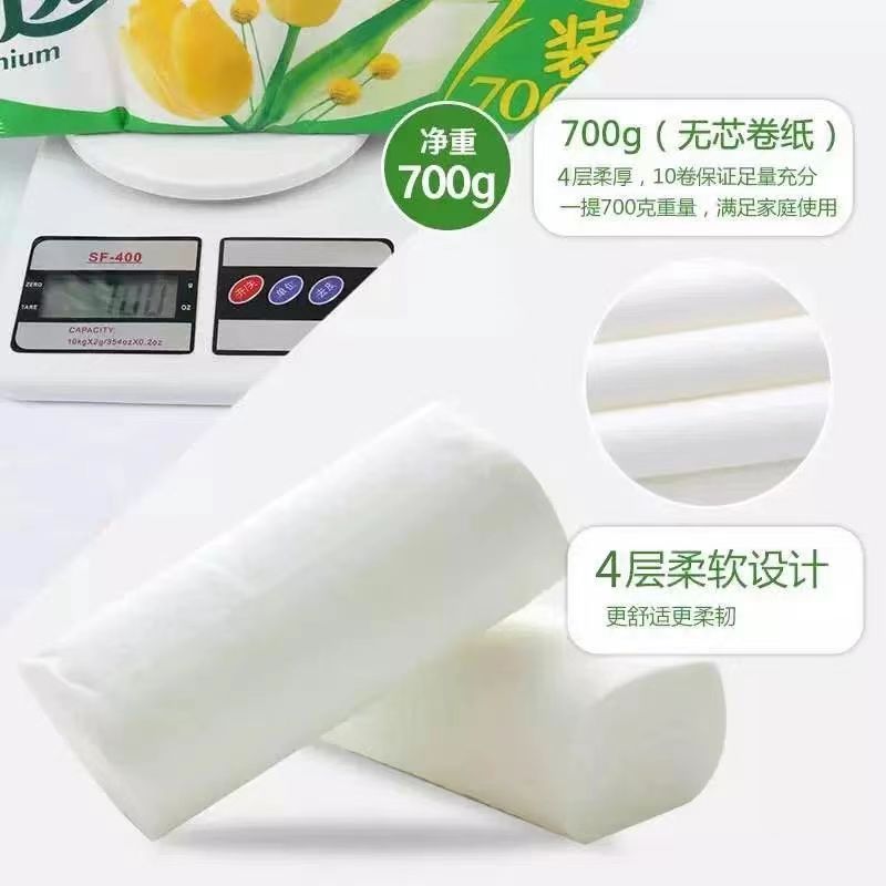心香印厳選チューリップ芯なしロールペーパー 家庭用4層700gトイレットペーパー卸売ロングロール大ロール