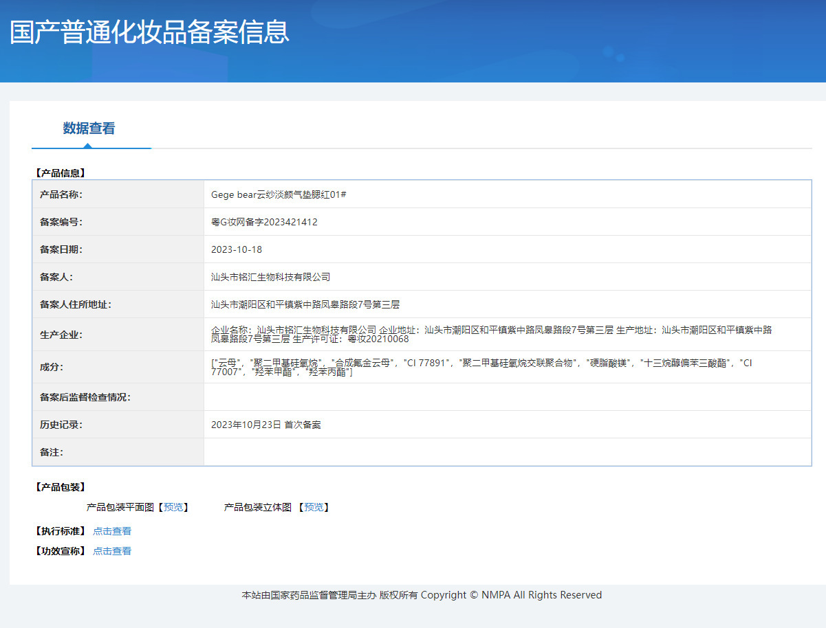 非特定化粧品届出証番号 広東g化粧ネットの予備字2023421412
