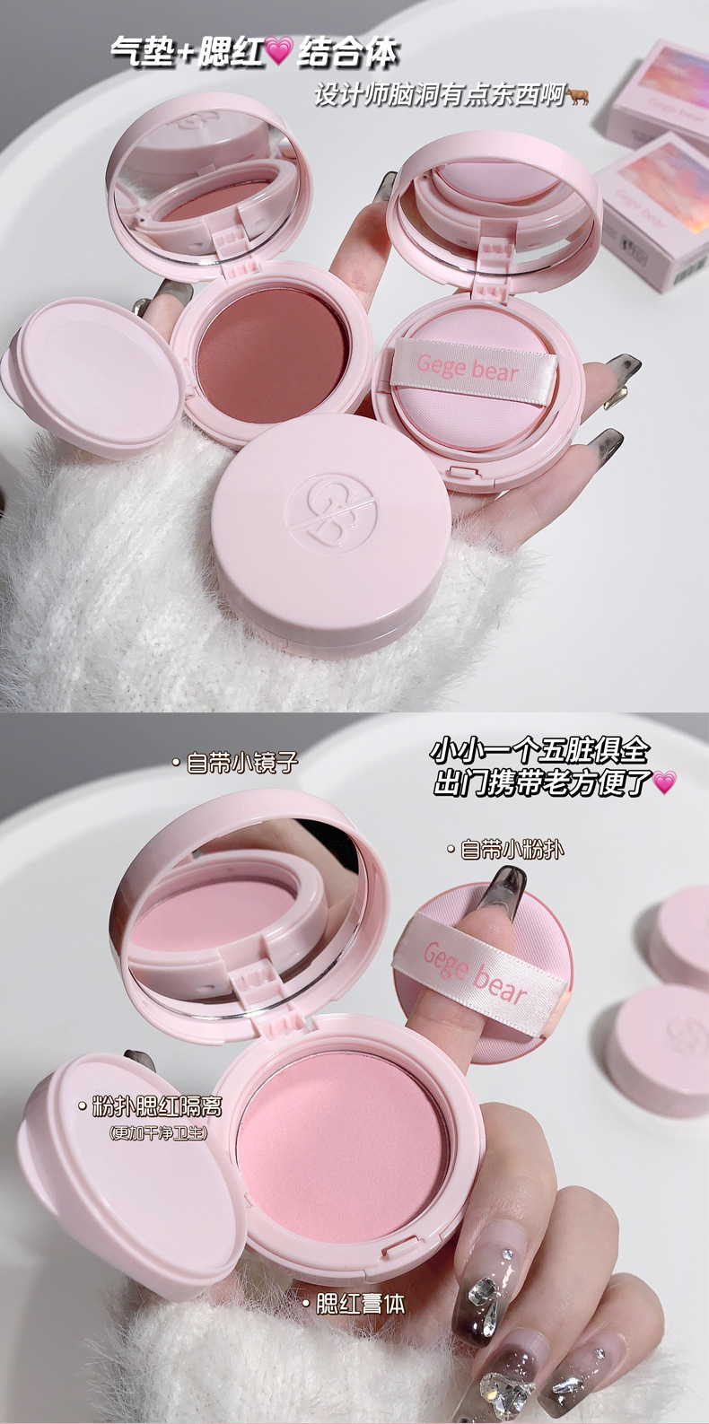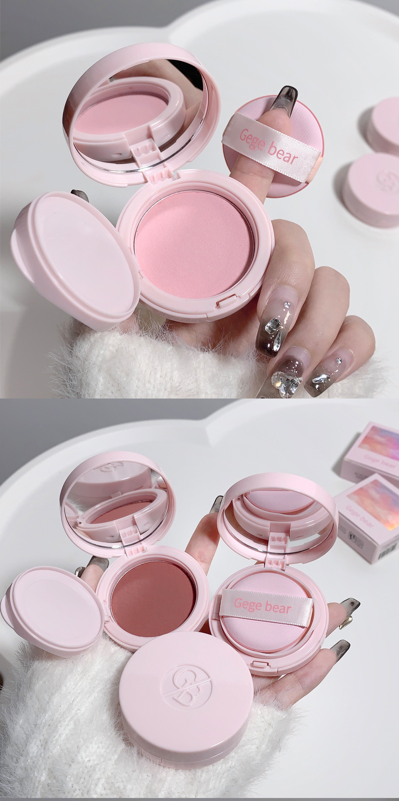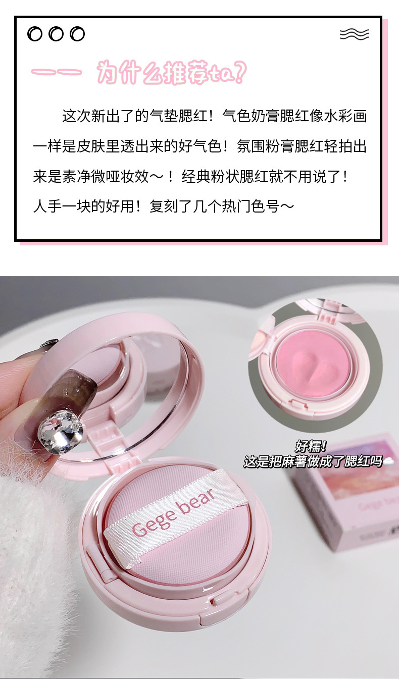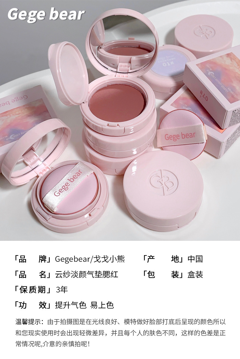 Gege bearゴゴ熊雲紗淡顔マット頬紅低飽和霧面マット紫色紅