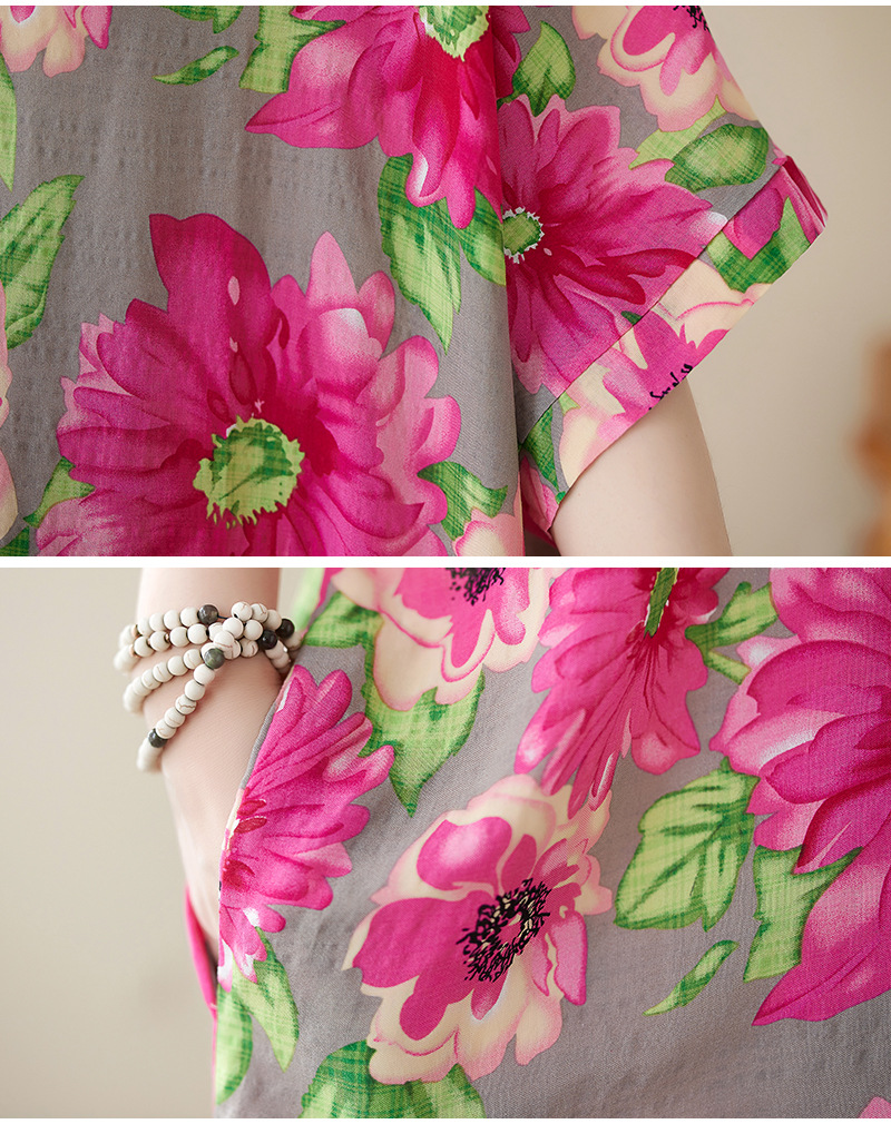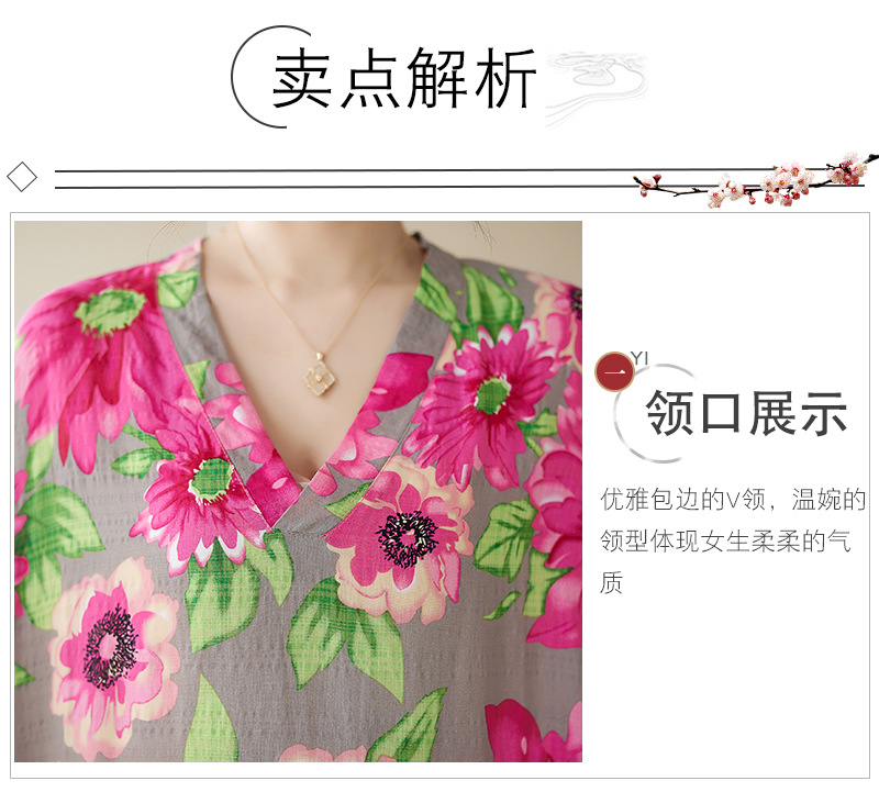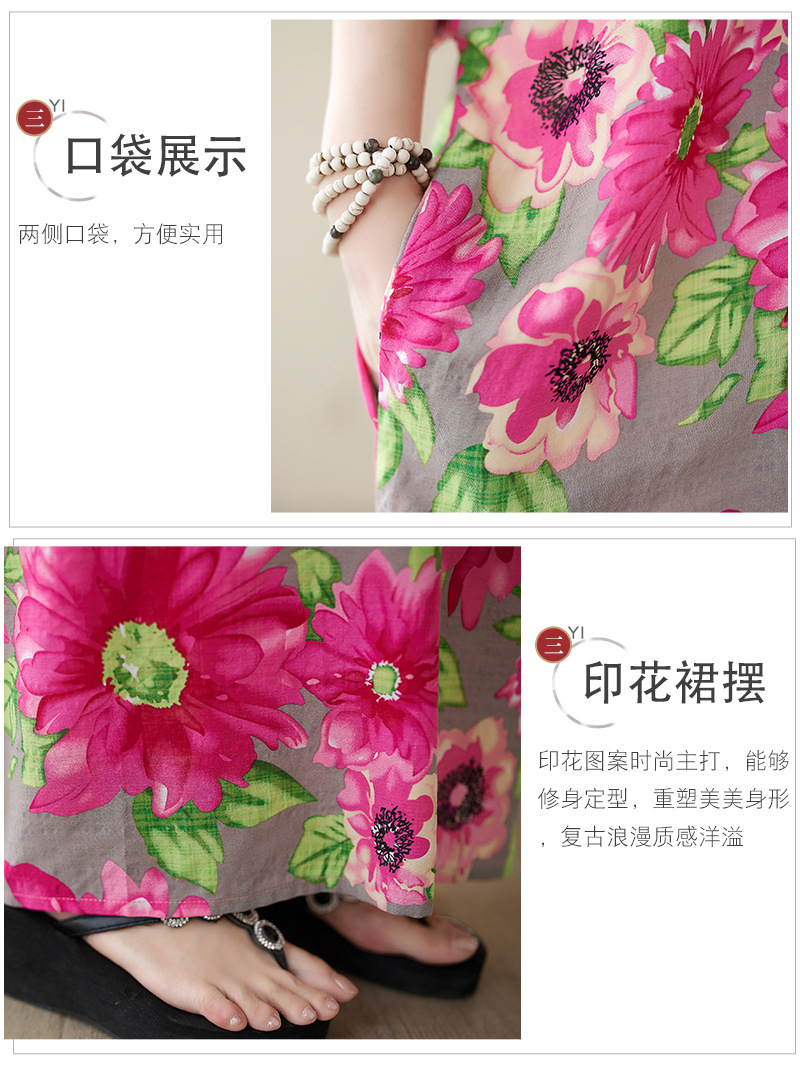 2023春夏新作大きいサイズの女装文芸綿麻ファッションは太ってプリント半袖の中の長いワンピースを大きくします。