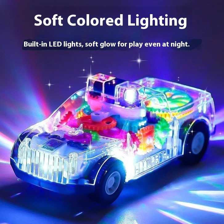 透明警车玩具带闪光LED灯和警报声电动全轮驱动教育STEM学习玩具