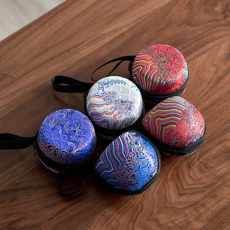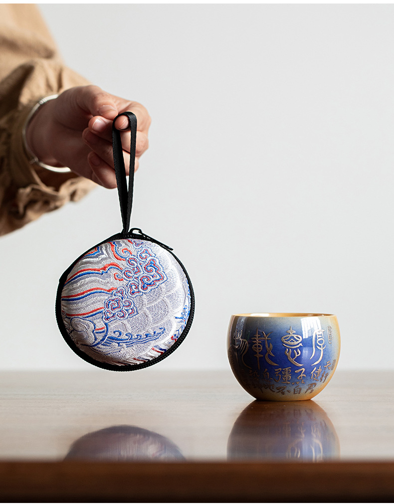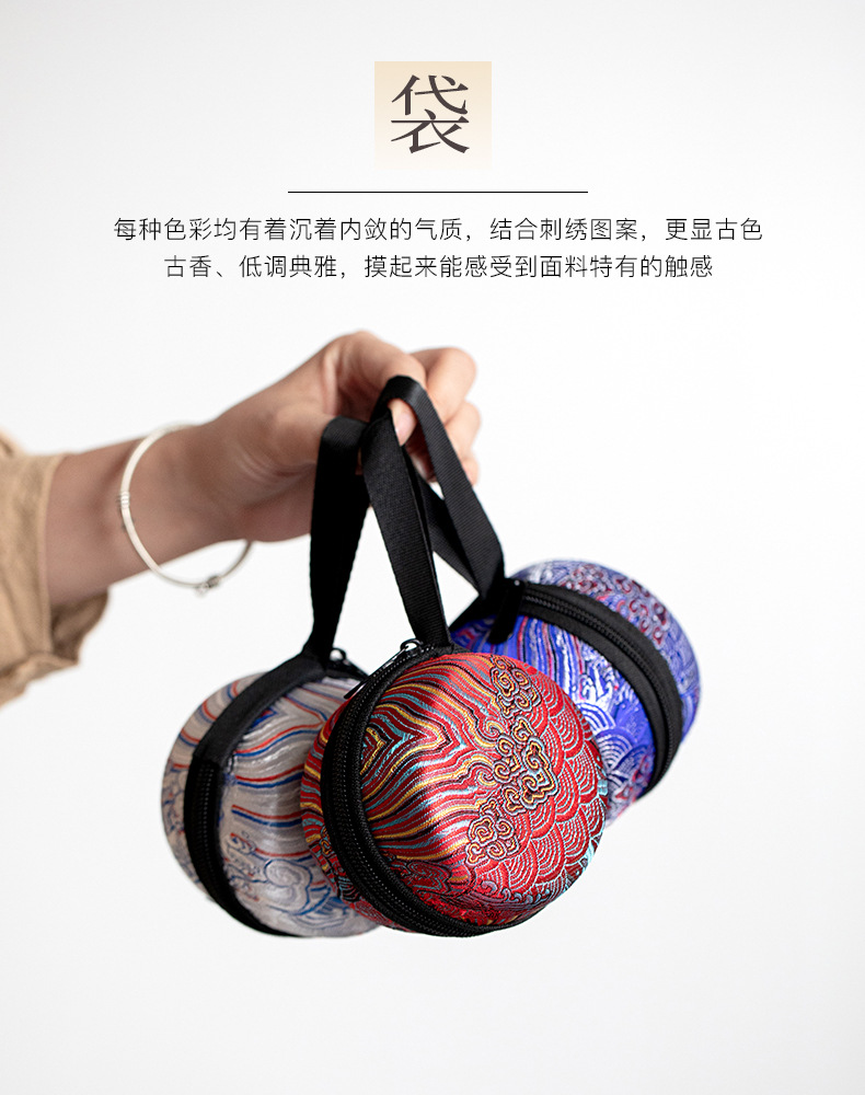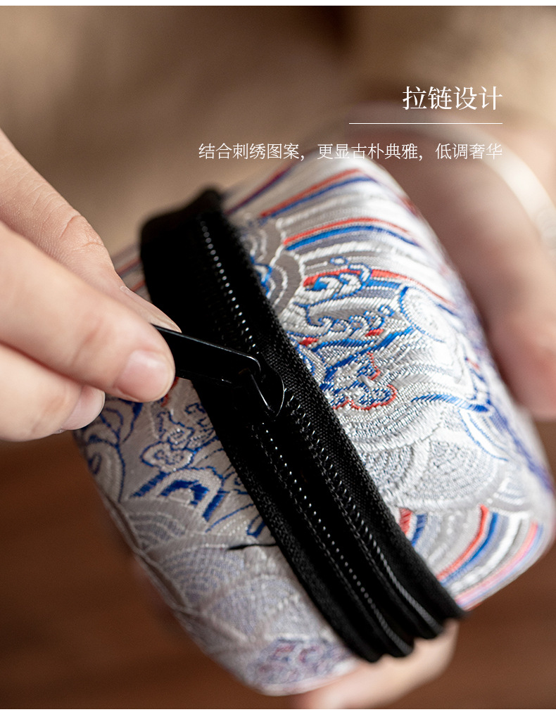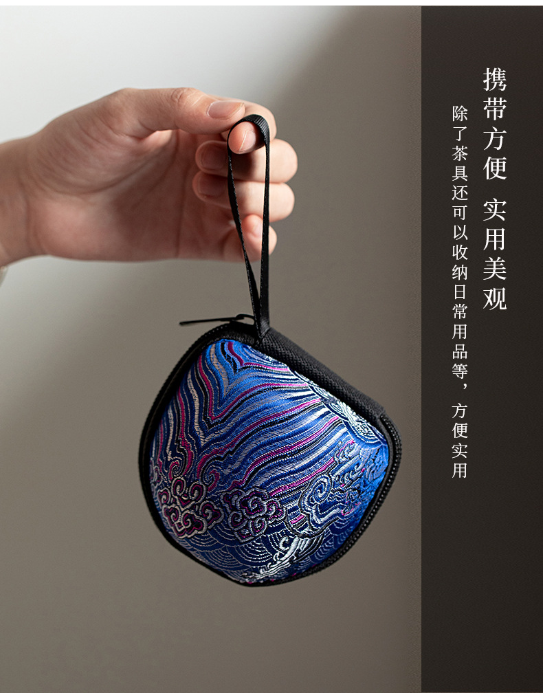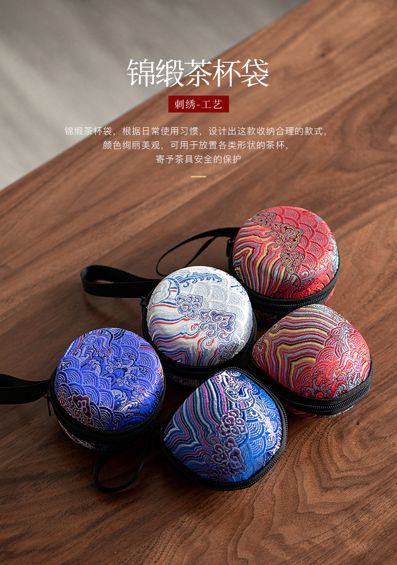 中国風クラシックな雲錦海浪江崖模様のシングルカップトラベルバッグ、小丸バッグ、シェルバッグ、茶器カップ、クイックバッグ、ハンドバッグ