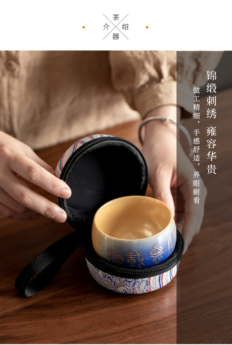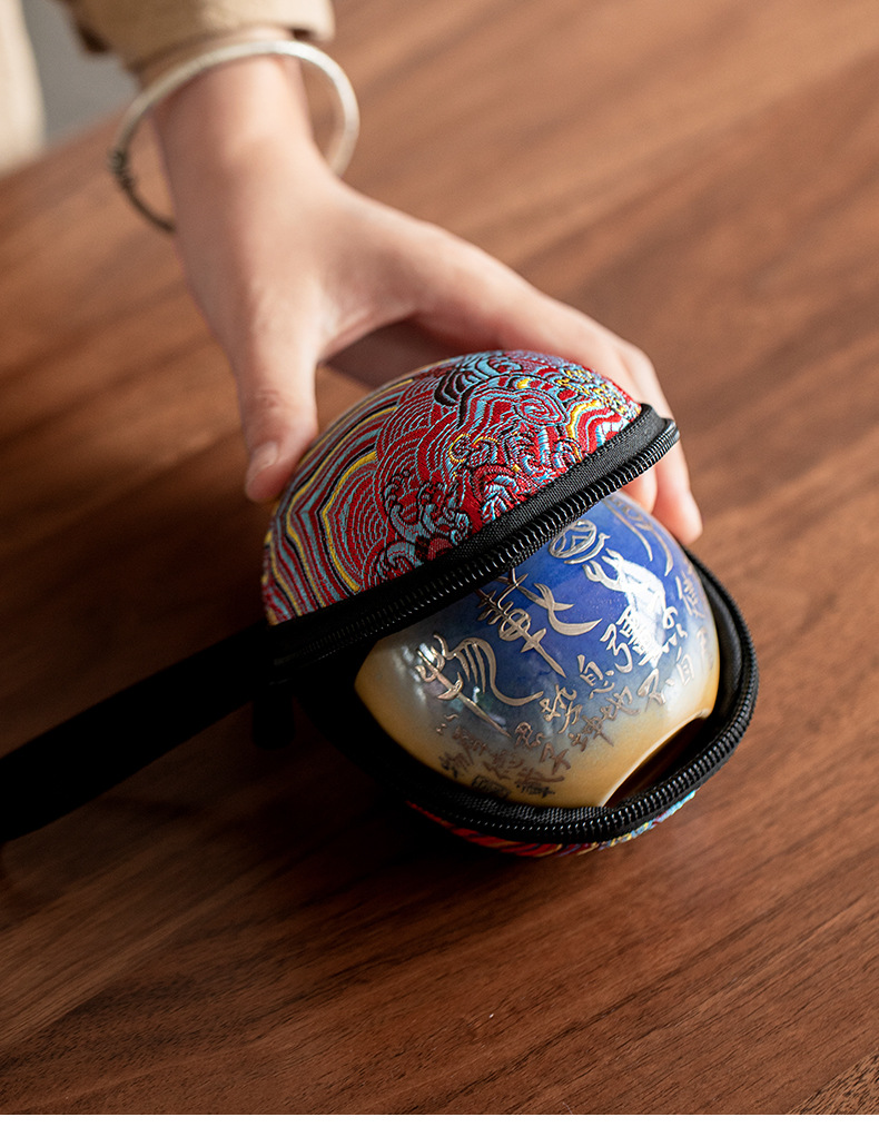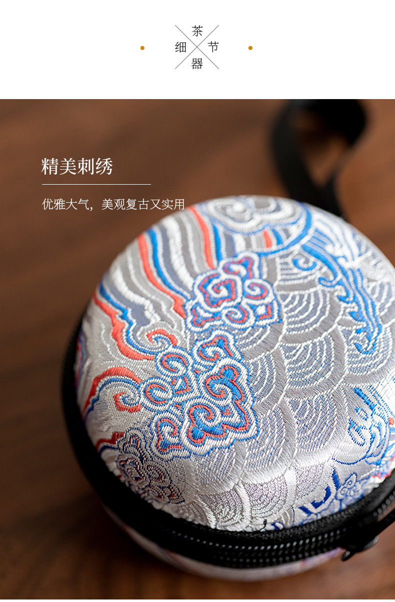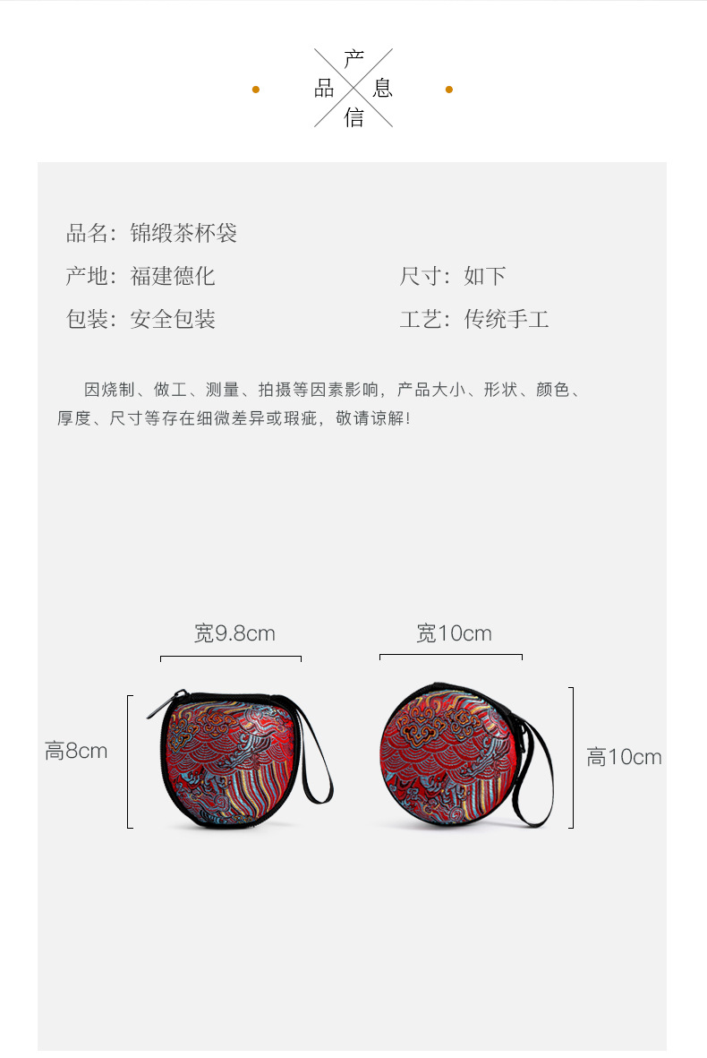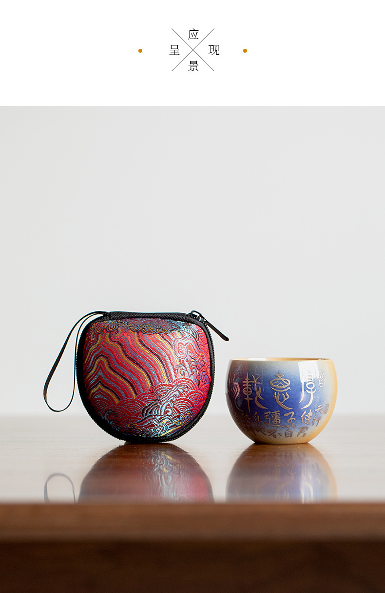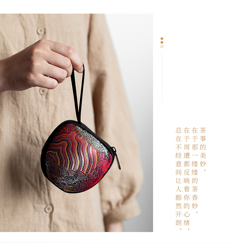 中国風クラシックな雲錦海浪江崖模様のシングルカップトラベルバッグ、小丸バッグ、シェルバッグ、茶器カップ、クイックバッグ、ハンドバッグ