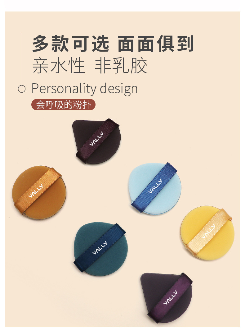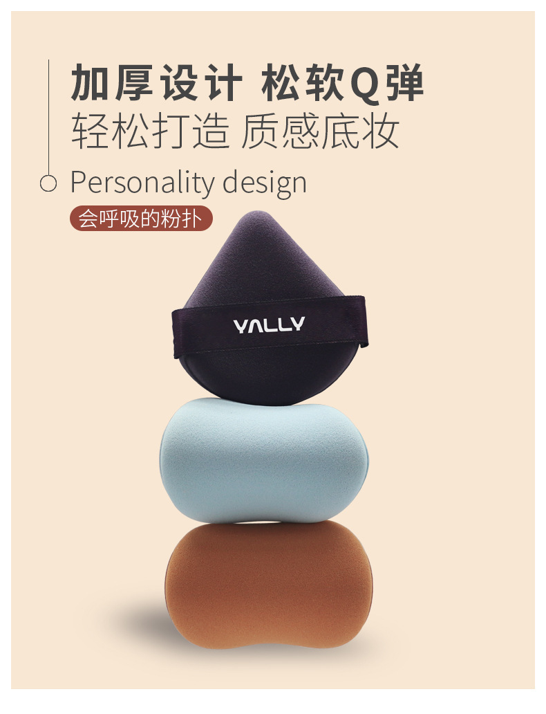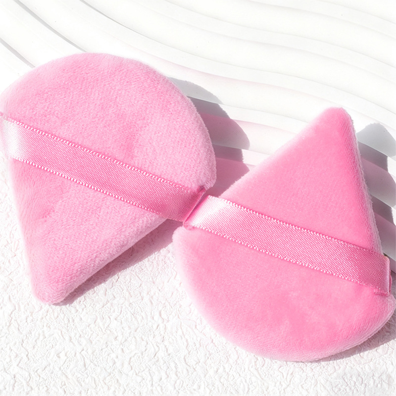 卸売ミニフィンガートライアングル小型リボンパウダーパフ、乾湿両用植毛パフ、死角なしで長時間キープ