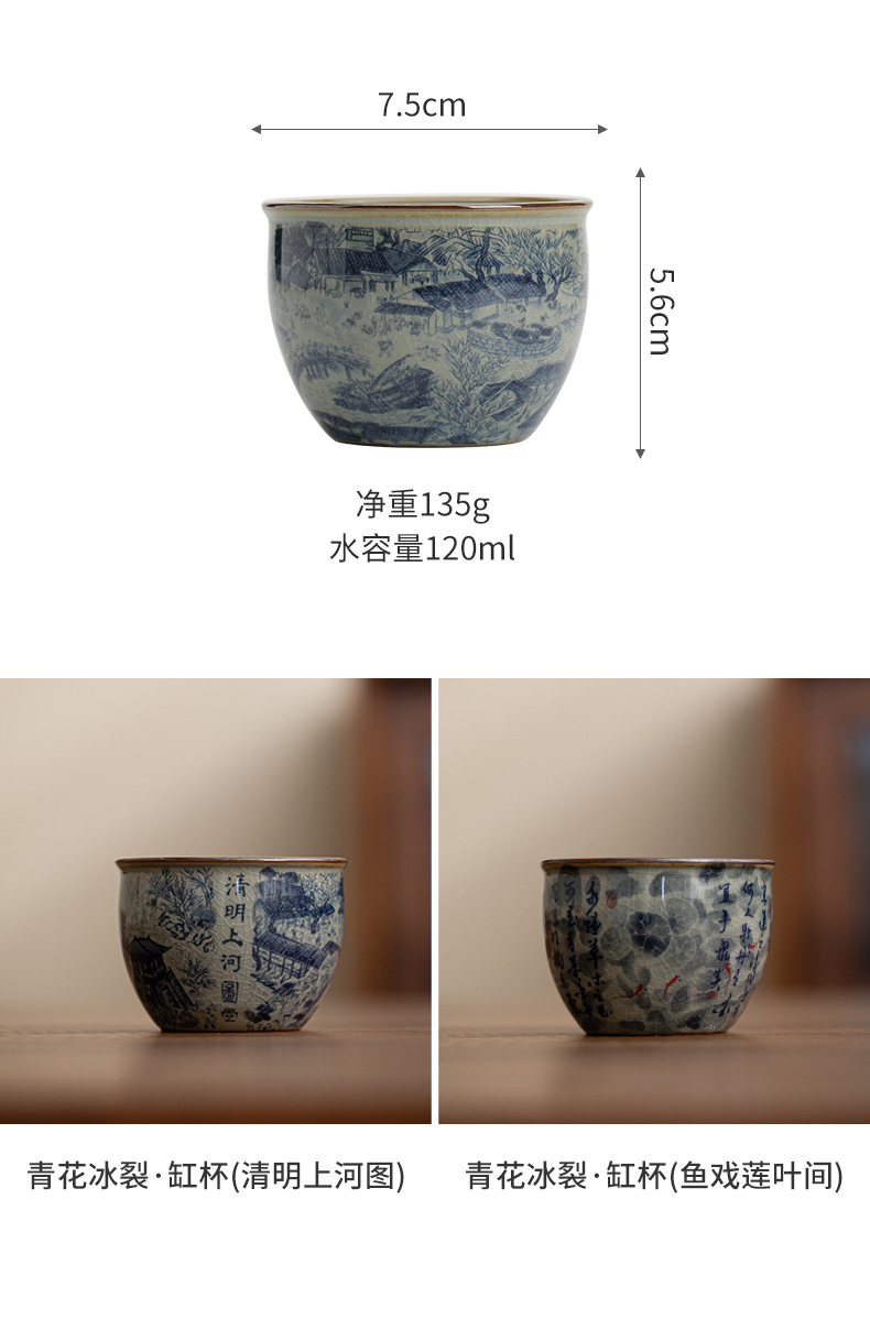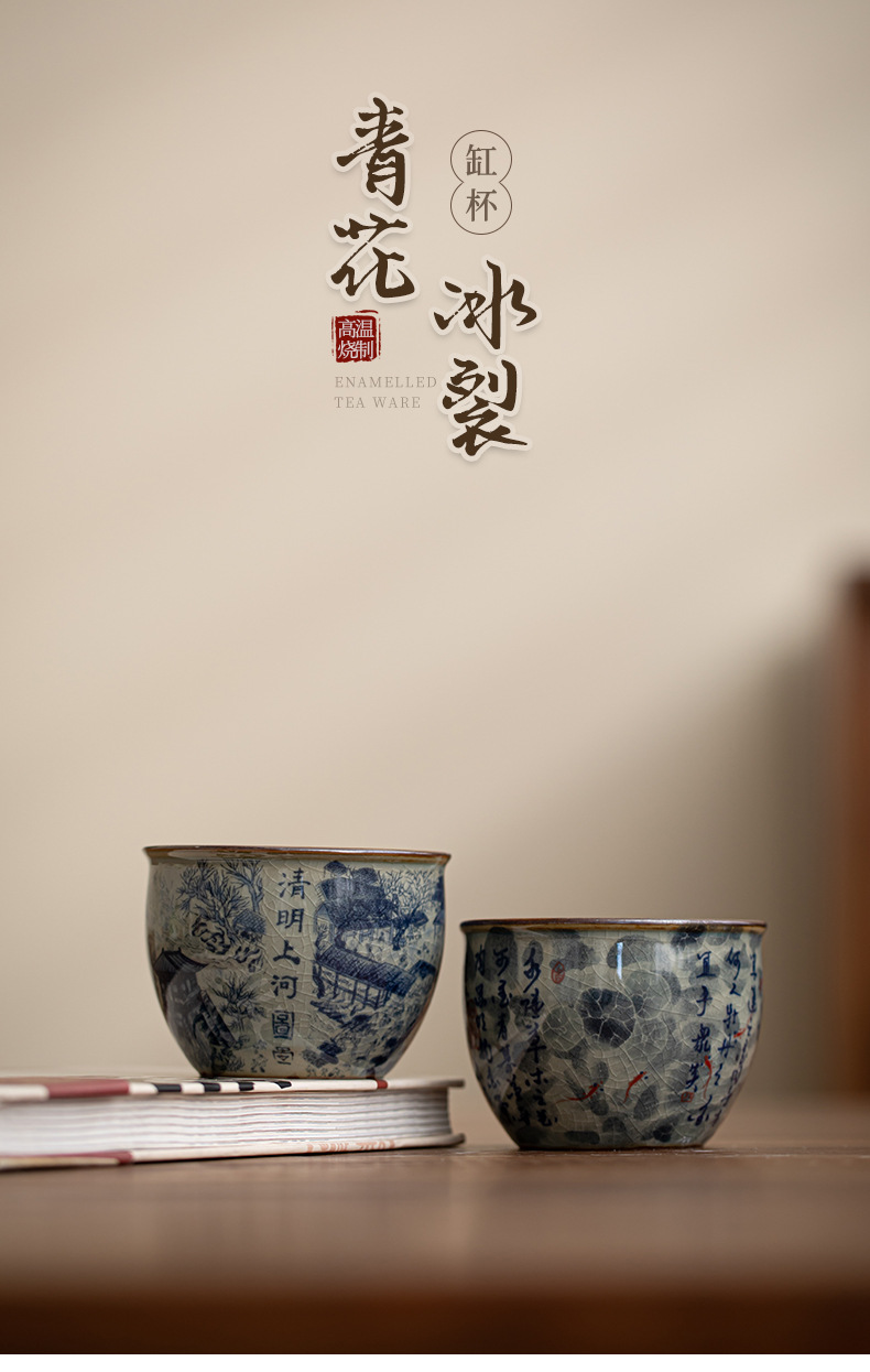 色分類 アンティーク青花 -- かめ杯【清明上河図】,古き青花をまねる -- かめカップ【愛蓮説】