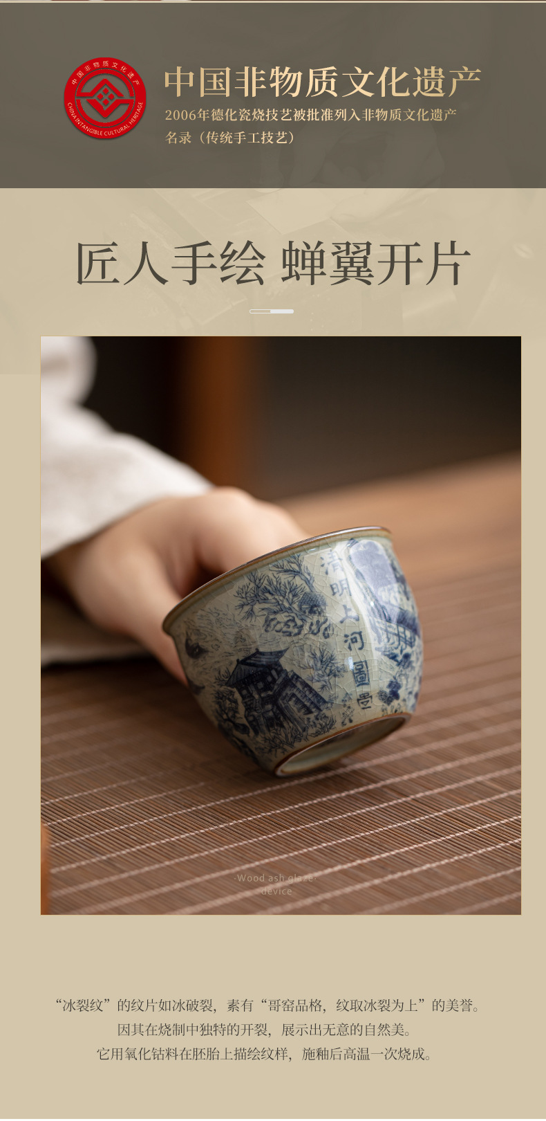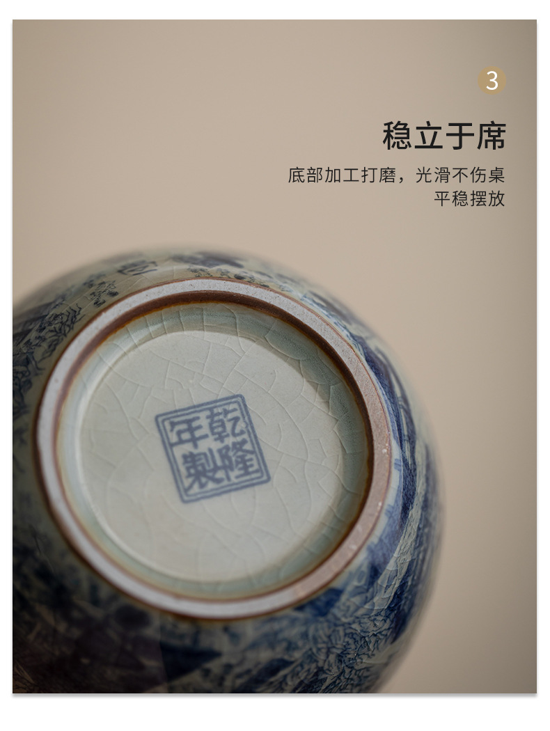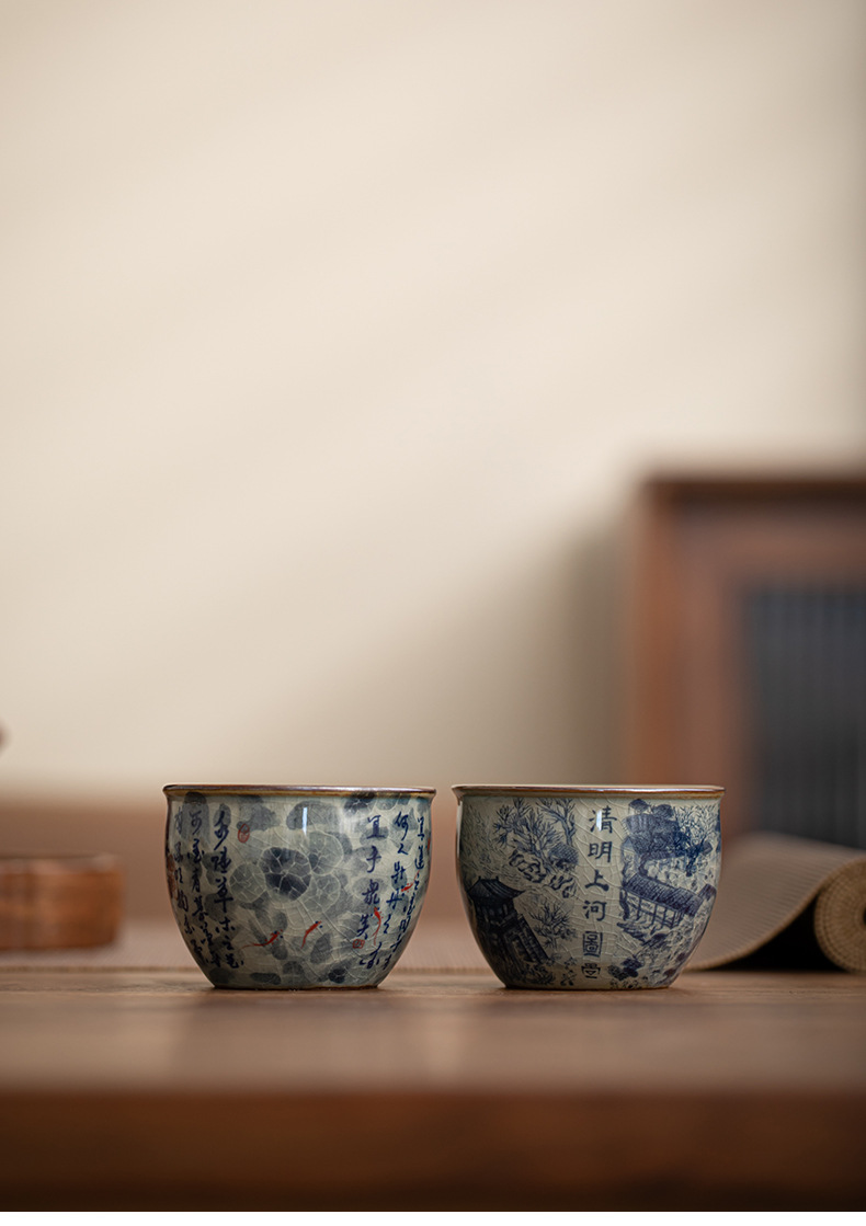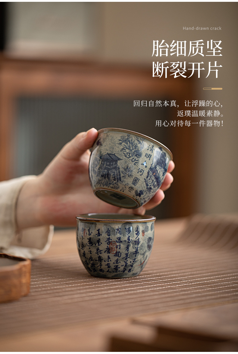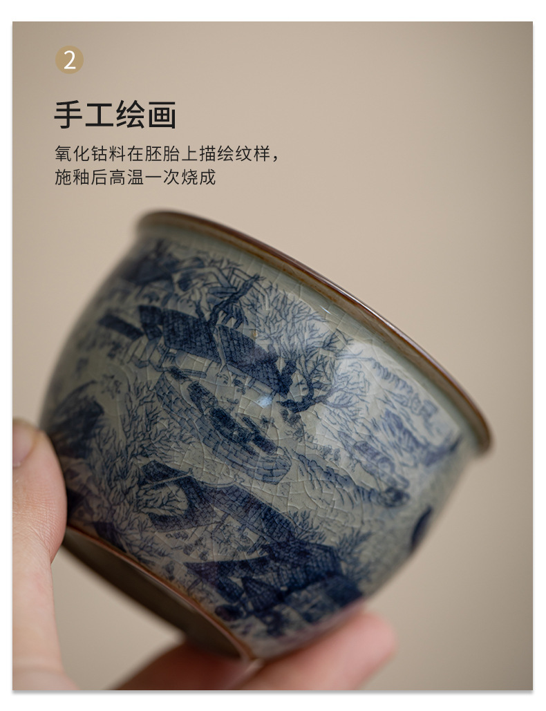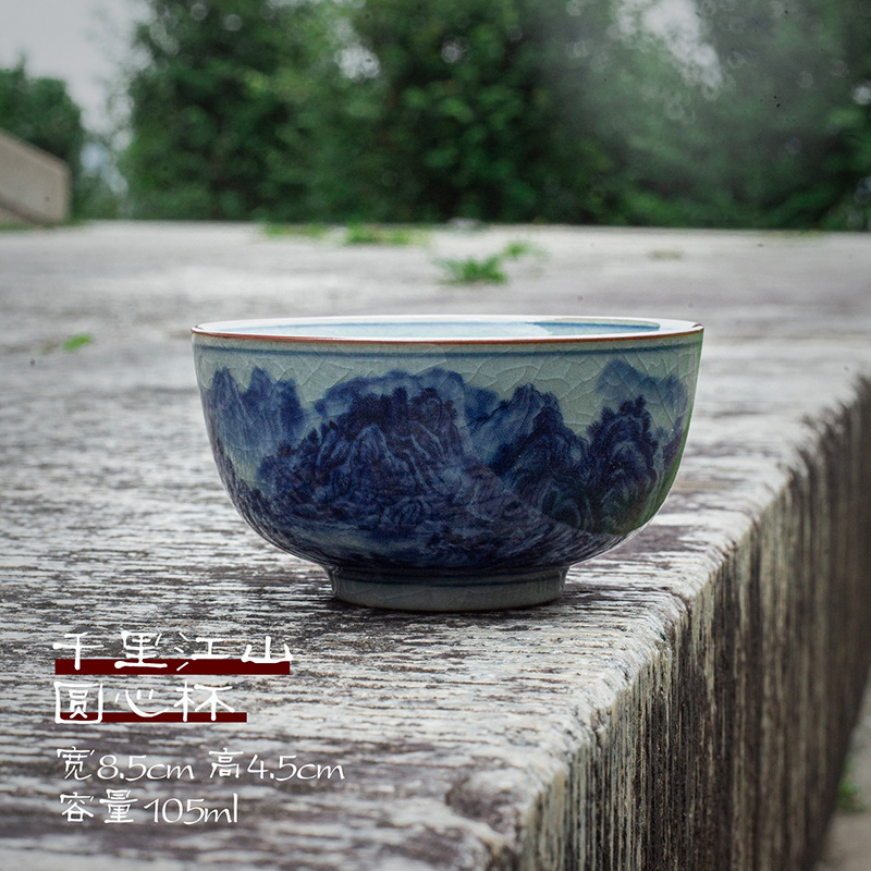 新款千里江山陶瓷茶杯老陶泥中式复古品茗杯主人杯单杯青花压手杯