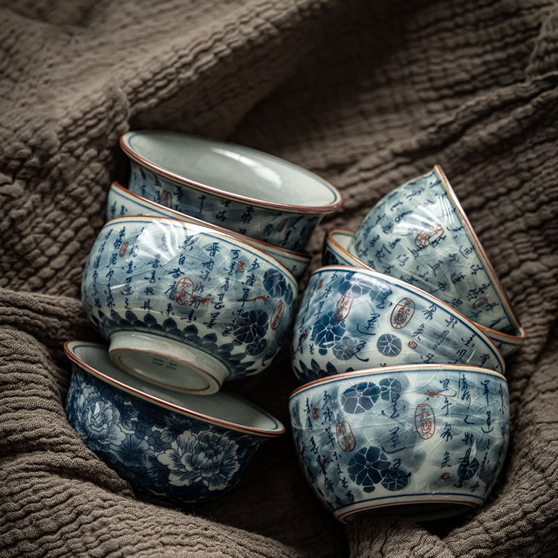 古い陶泥青花磁器の主人の杯のお茶の杯の工夫の茶道具のお茶のお茶の杯は水の茶碗の個人の1杯の卸売りを飲みます。