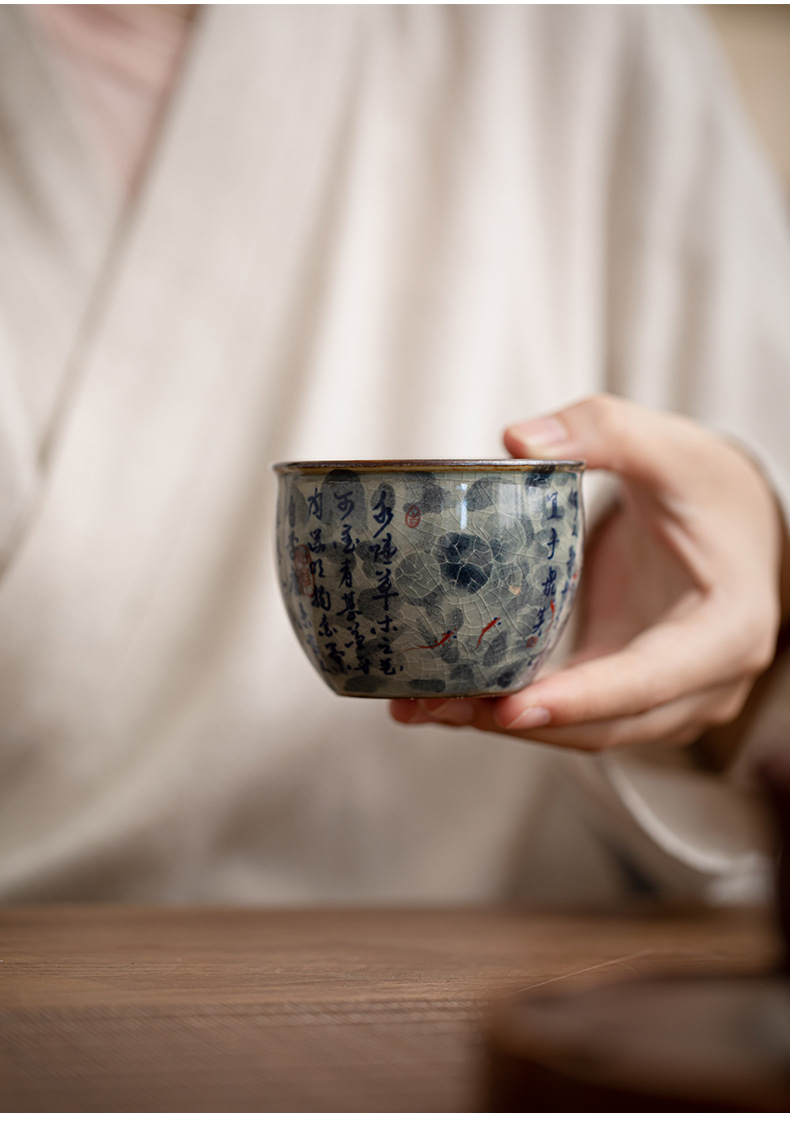 汝窯水墨山水円鼎杯カップ個人専用高級主人カップ