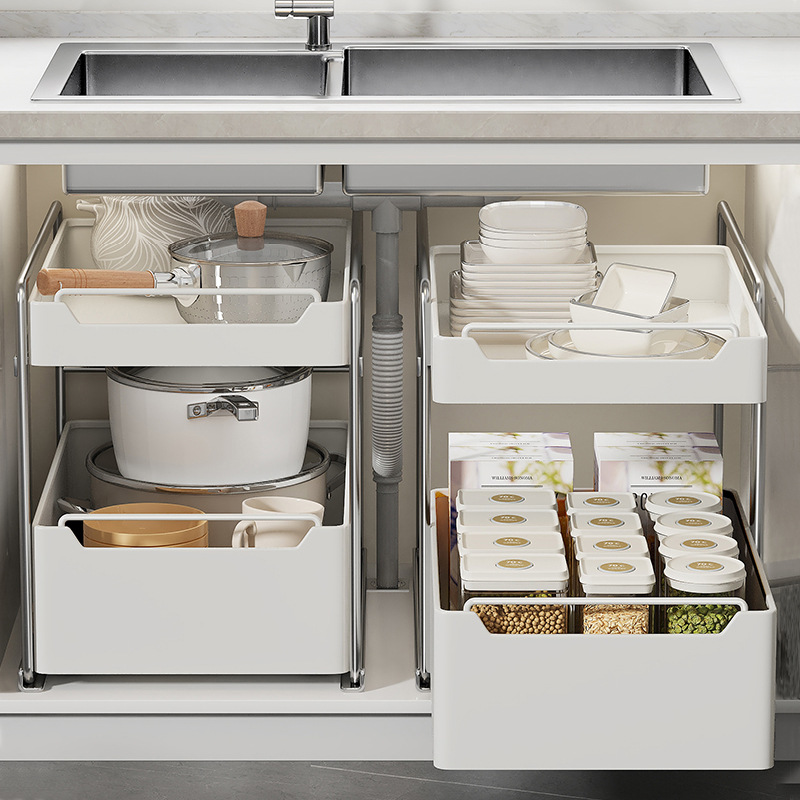 ステンレスキッチン棚下水槽調味料鍋具階層引き出し戸棚バスケット収納整理棚