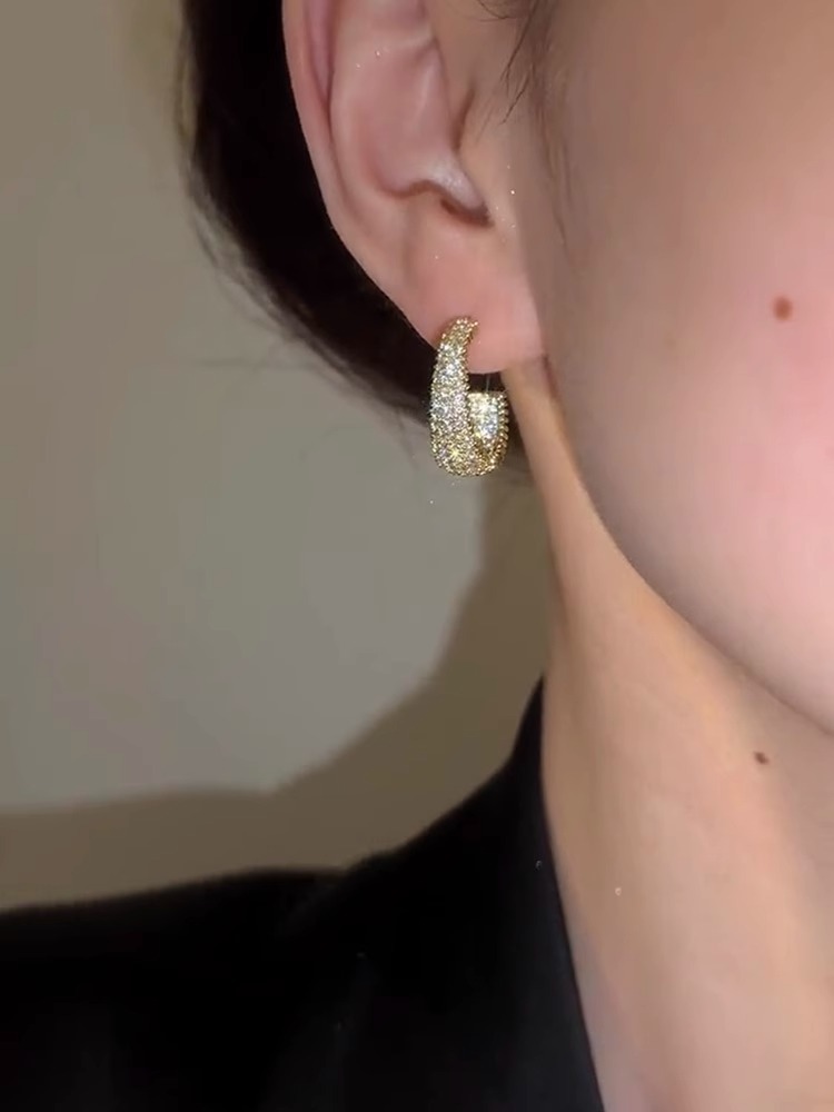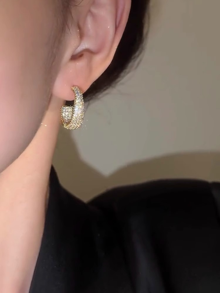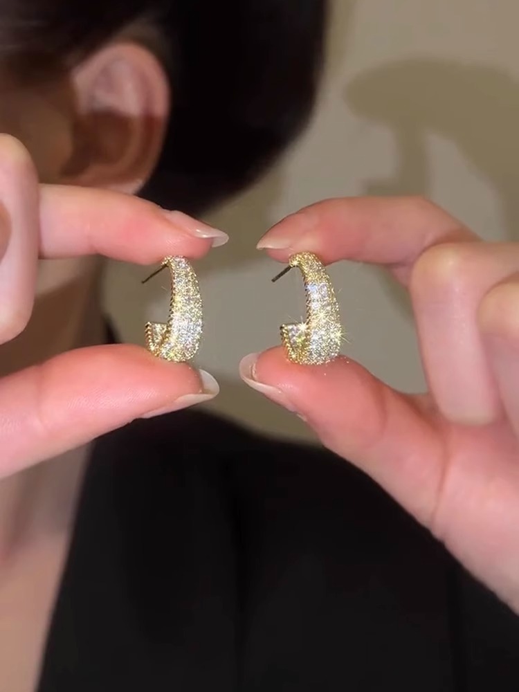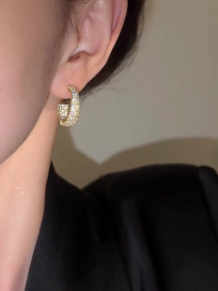 金色の小さなジルコンの半円形イヤリングs925銀針の高級感があります。