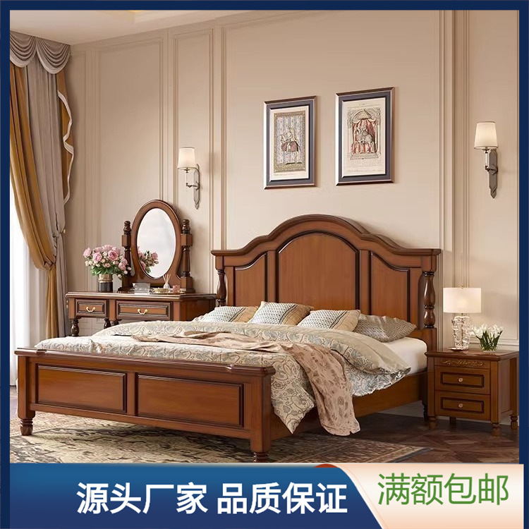 アメリカ式全実木ベッド主臥1.8ツインベッド復古原木家具1.5メートルヨーロッパ式シンプル高箱貯蔵物