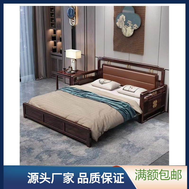 新中国式紫金檀木造木折り畳み伸縮両用ソファベッドソフトバック現代客間寝室家具