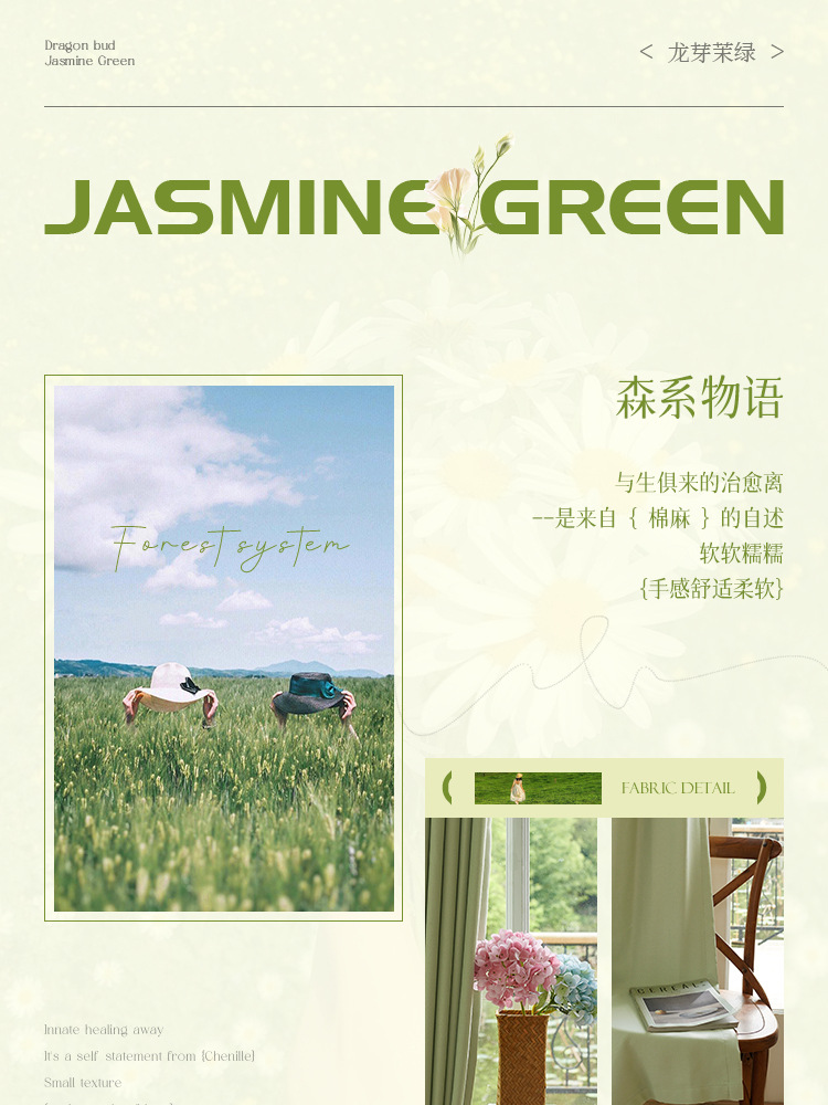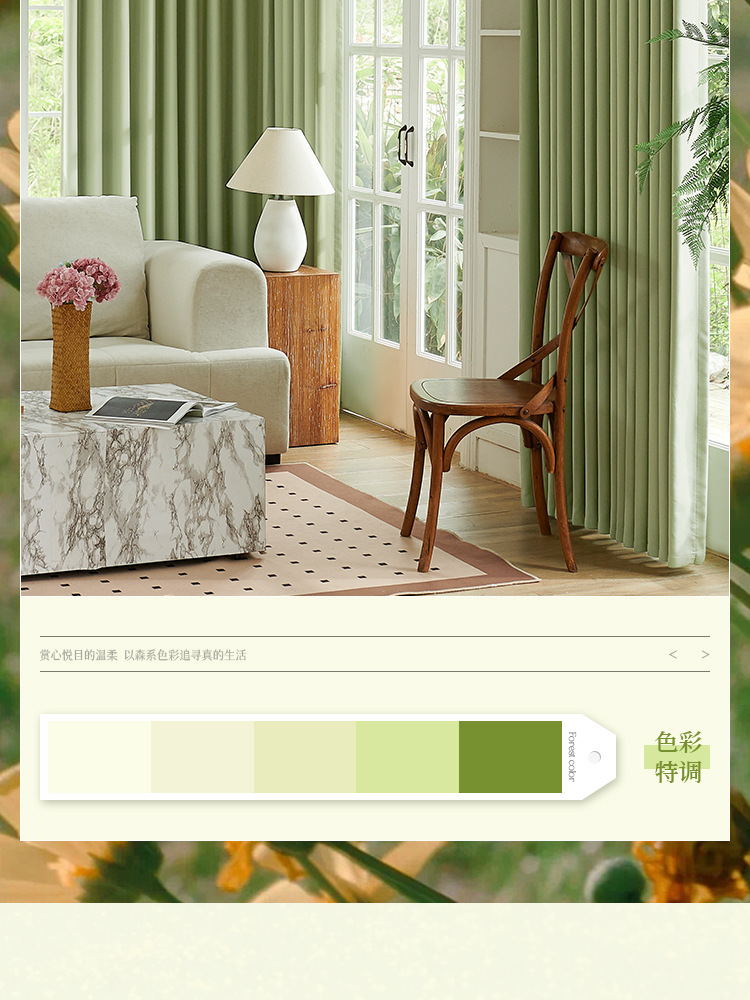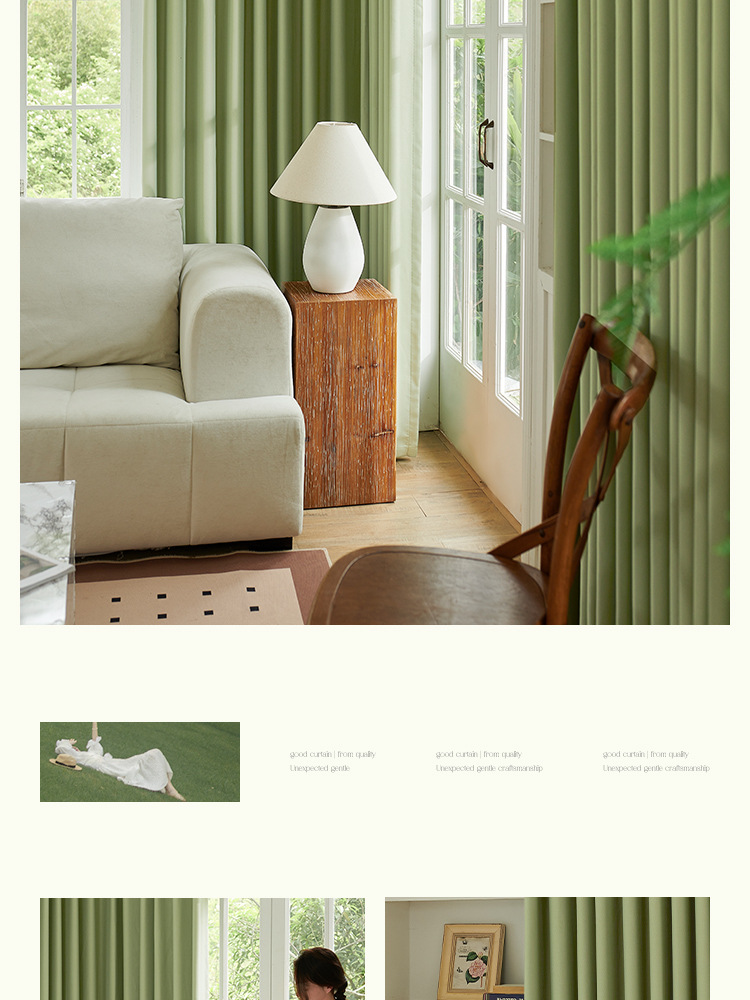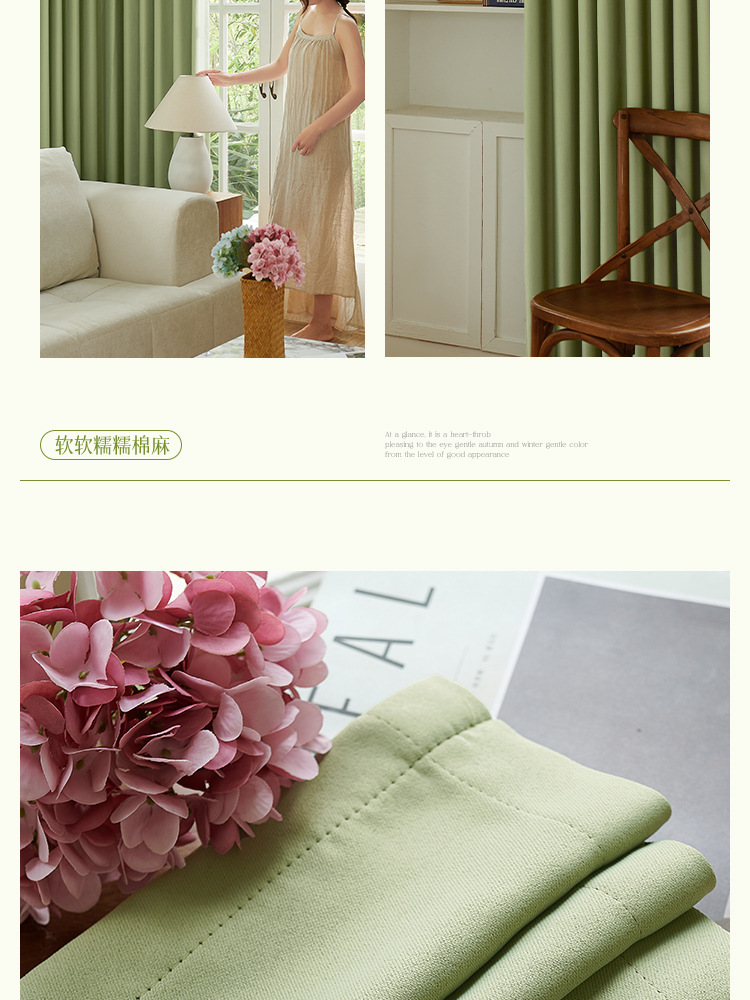 高級両面綿麻生地 厚手遮光カーテン生地 寝室用抹茶グリーン 紹興卸売 高遮光カーテン