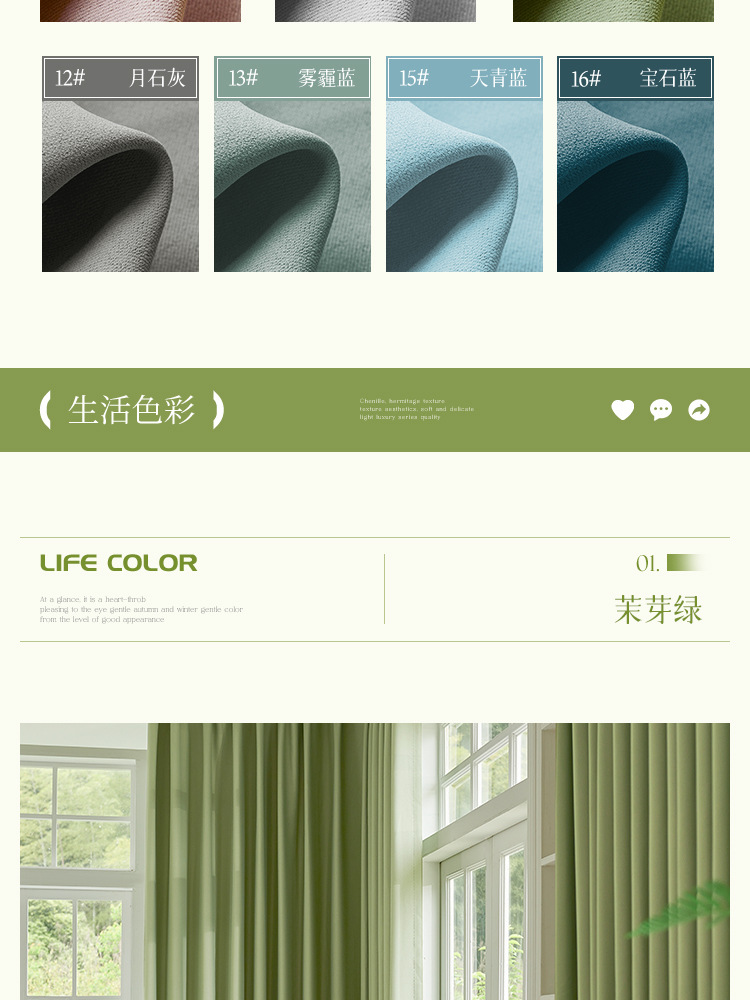 紹興柯橋全遮光断熱柔らかいシェニール寝室客間現代シンプルで贅沢なカーテン生地卸売り