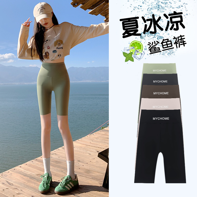 五分のサメのズボンの女性の夏の薄いタイプの高腰は尻の後の腰の印字のヨガのバービーを持ち上げて光を放つことを防ぎます。