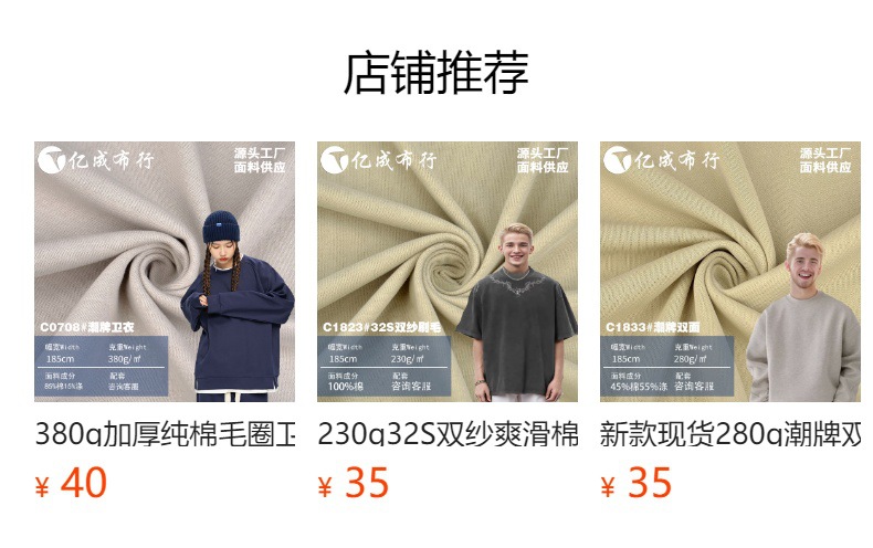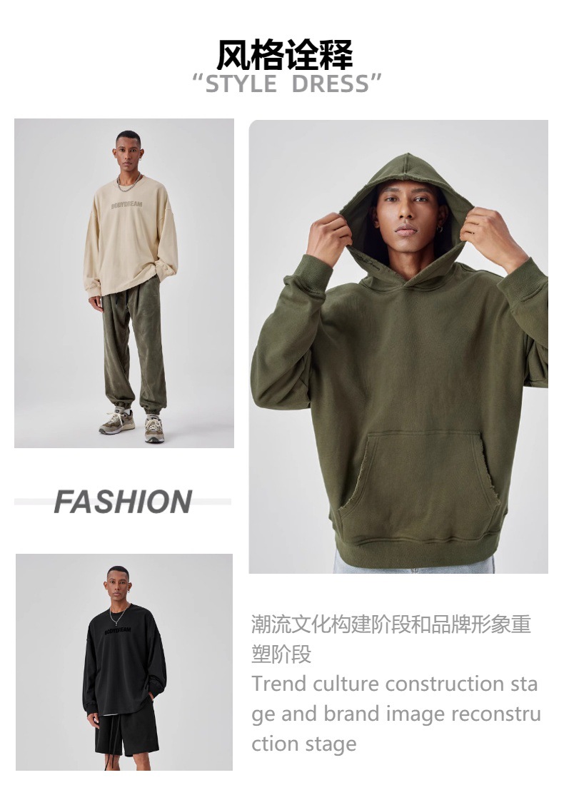 380g全綿毛輪大衛衣ニット生地秋冬高坪重国潮セット純綿衛衣布地