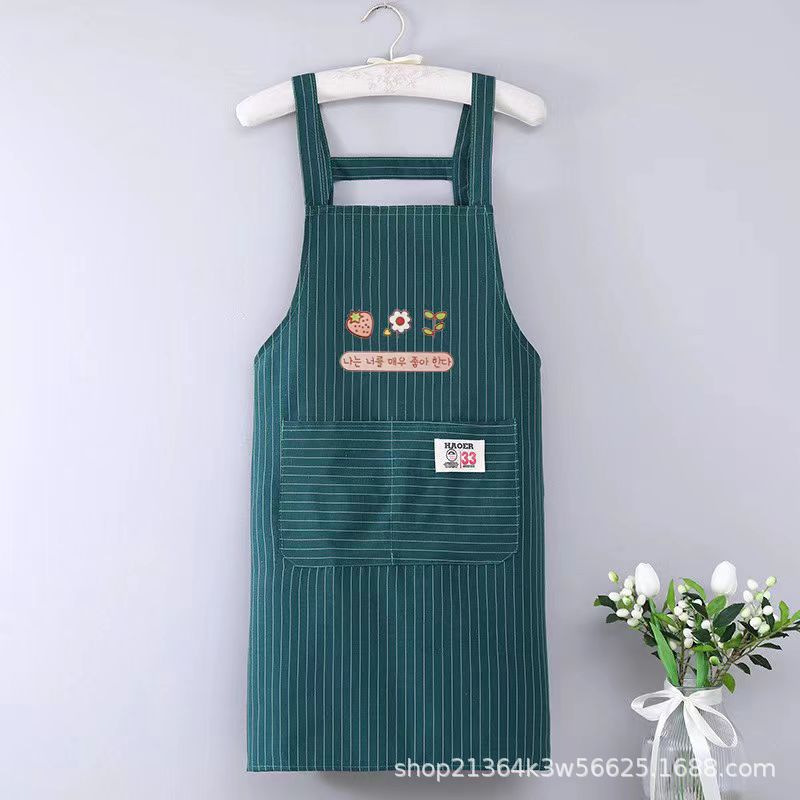 新しいエプロン家庭用女性キッチン料理小清新夏の薄い通気作業服綿麻ウエスト制