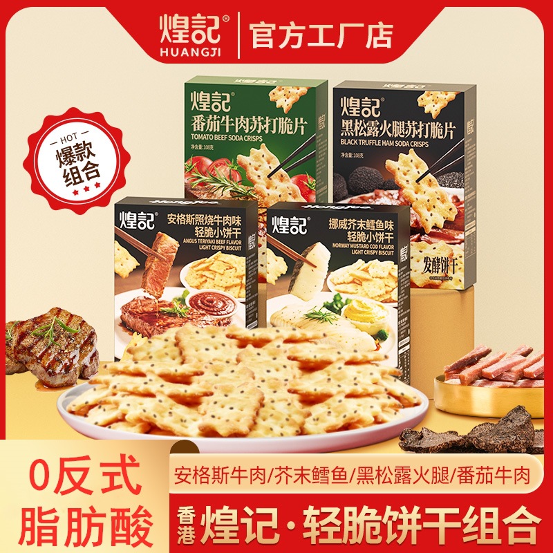 煌记黑松露火腿苏打脆片饼干108g 番茄牛肉办公室休闲小零食盒装