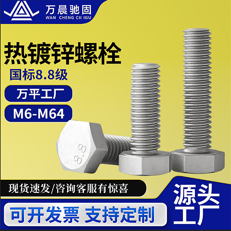 8.8级热镀锌电力铁塔螺丝国标光伏螺栓热浸锌外六角加长螺栓