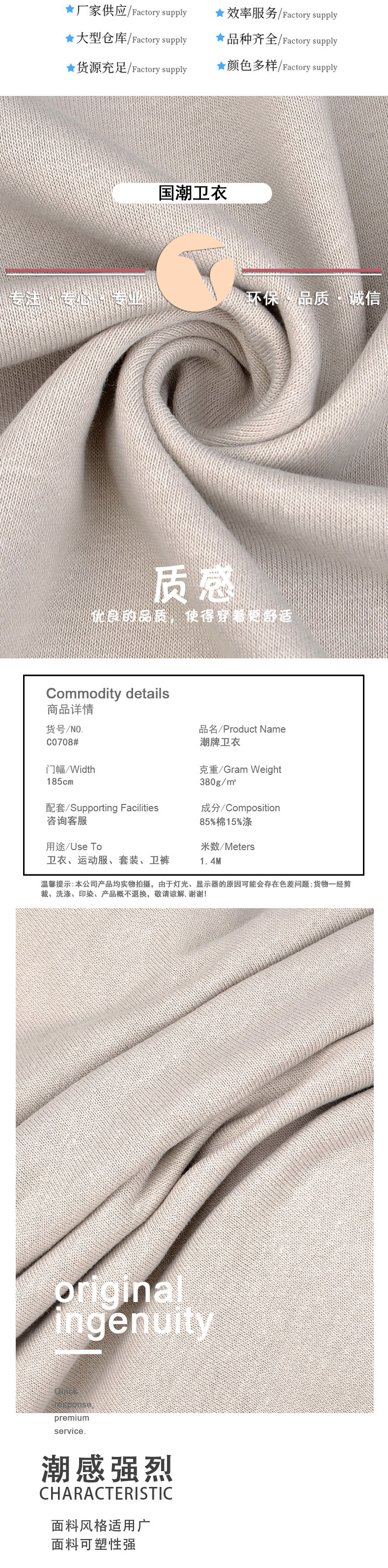 380g全綿毛輪大衛衣ニット生地秋冬高坪重国潮セット純綿衛衣布地