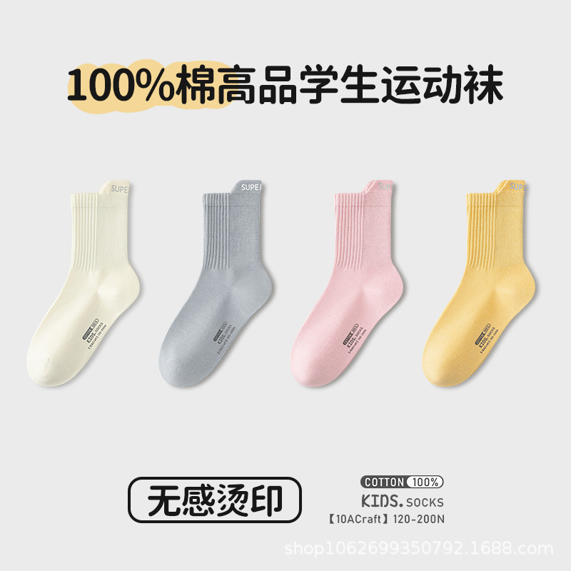 女童袜子无骨纯棉中筒袜春秋季纯色抗菌学生中大童全棉儿童运动袜
