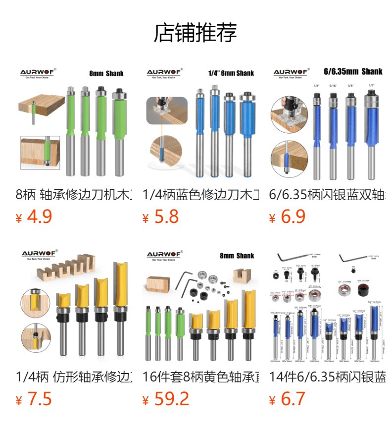 头部双轴承修边刀木工铣刀双轴承修边刀铣刀修边刀套装直刀轴承刀