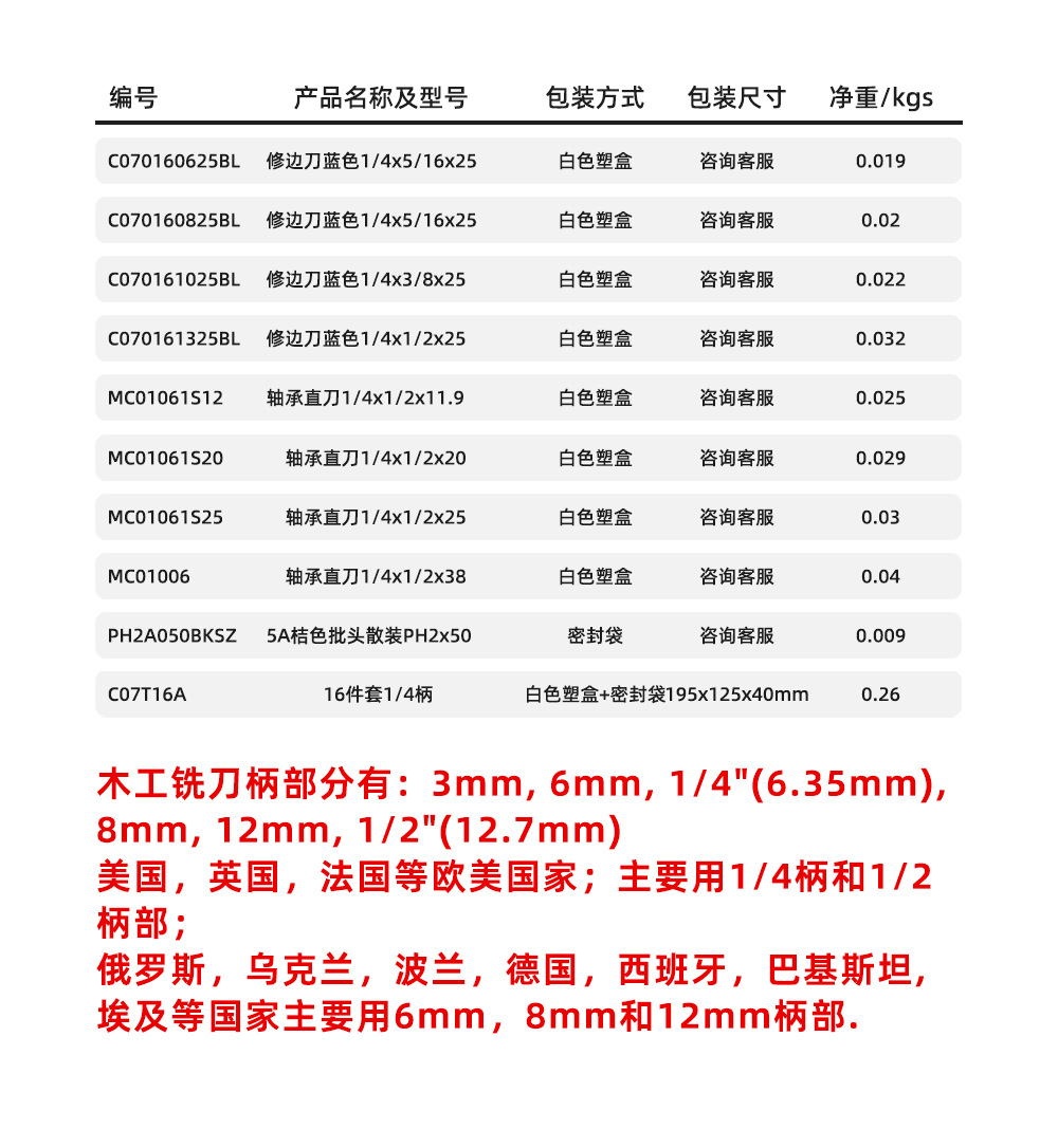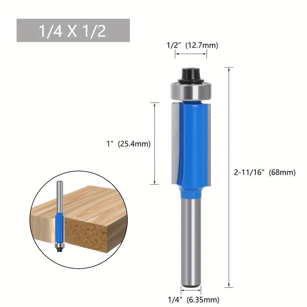 1/4柄仿型直刀带轴承木工铣刀具双刃轴承直刀雕刻刀修边刀开槽雕