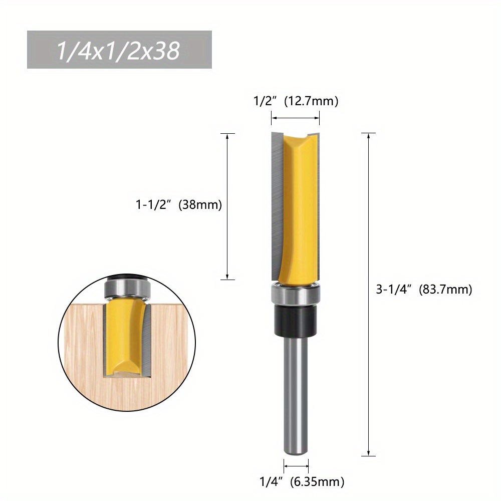 1/4インチ柄ベアリング付き直刃カッター3点セット、4点セット、型抜き・修边カッター、木工用フライス工具、両刃、工業用精度