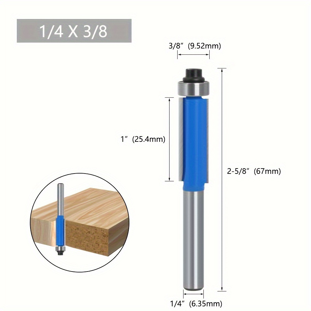 16ピースセット 1/4インチシャンク 黄色ベアリング付きストレートカッター 青色トリミングカッター ビット ベアリング付き木工用フライスカッター アクセサリーセット
