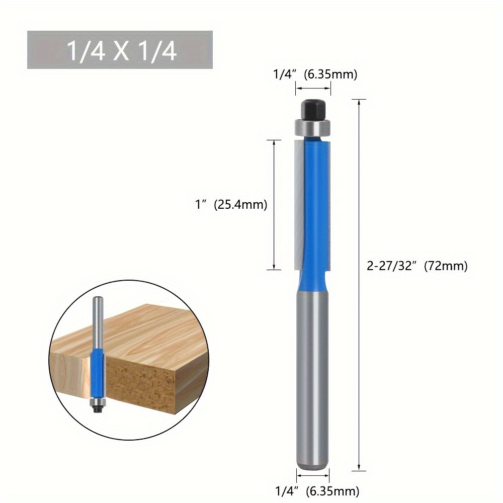 1/4インチ柄の青色トリミングブレード、木工用フライス工具、両刃、シングルベアリング付きストレートトリミングナイフ、トリミングマシン用