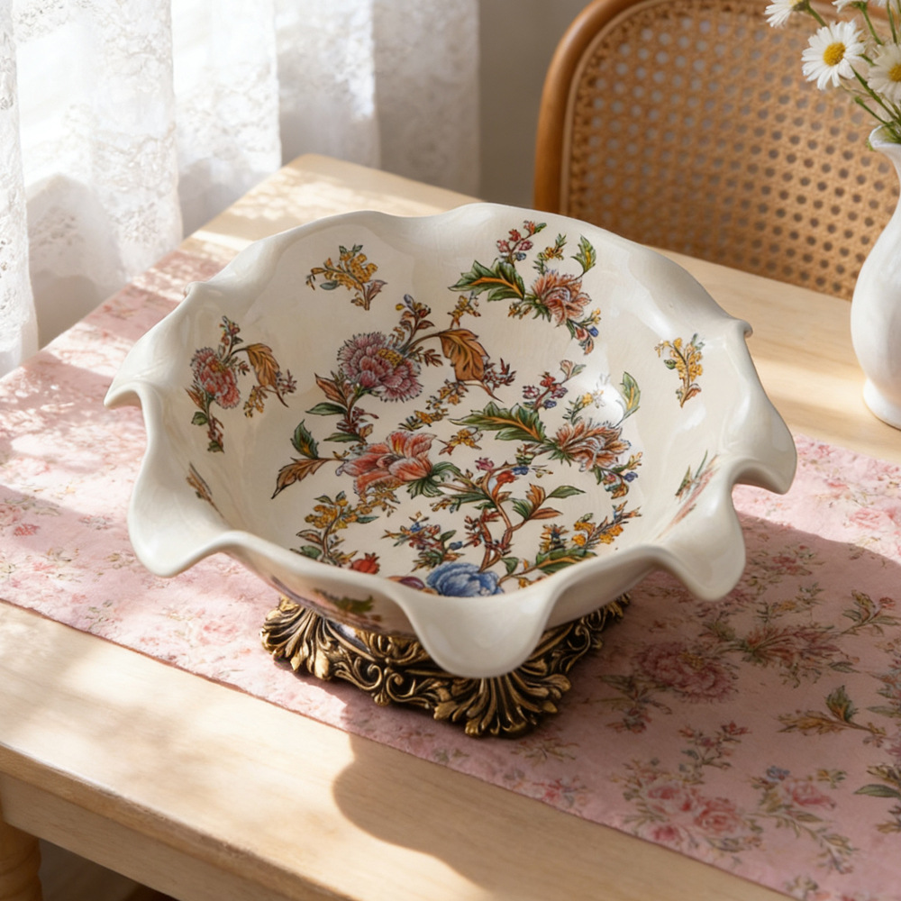 美式高足陶瓷果盘 复古奢华