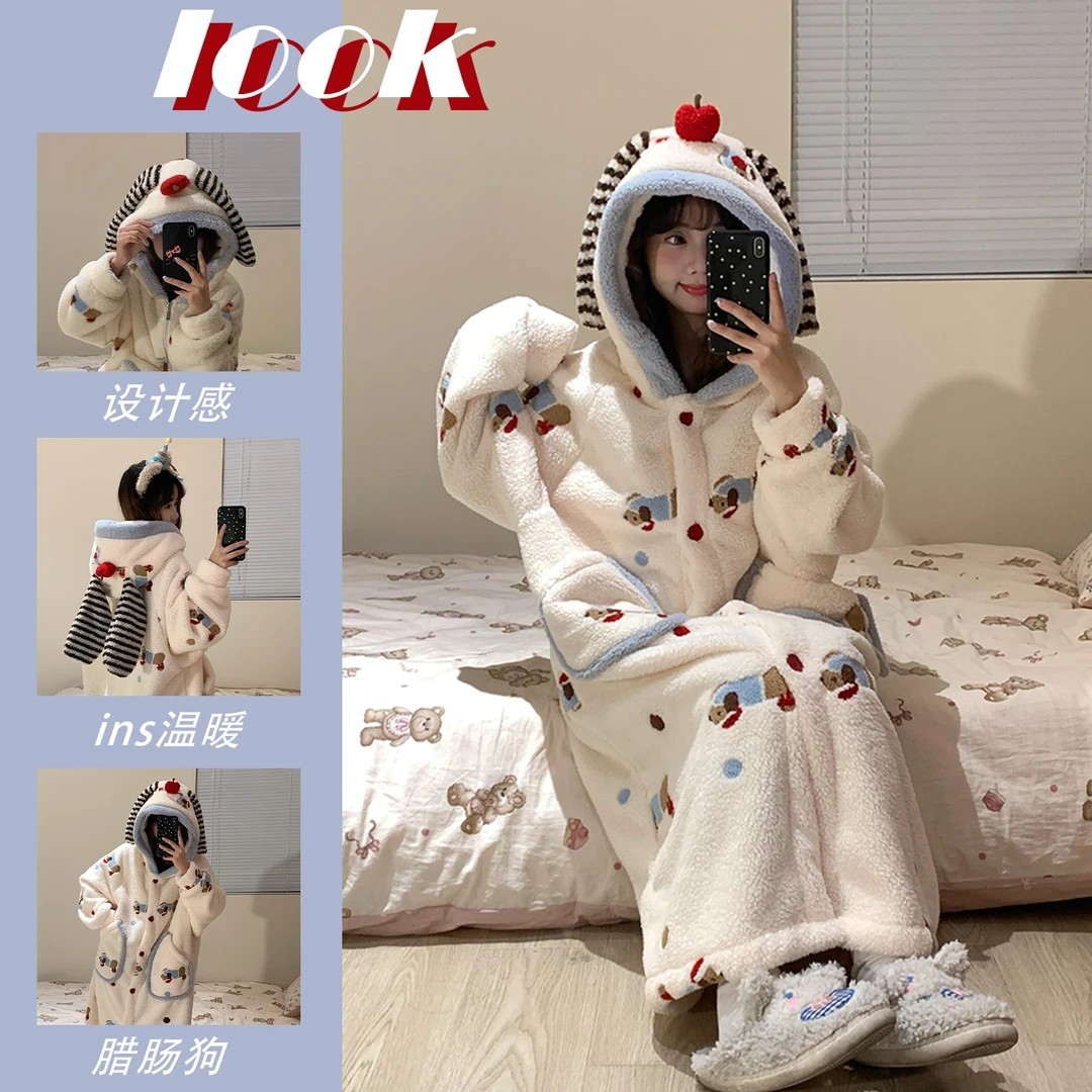 かわいい少女漫画ソーセージ犬パジャマ女性サンゴベルベット厚手パジャマ2025新型冬ホームウェア