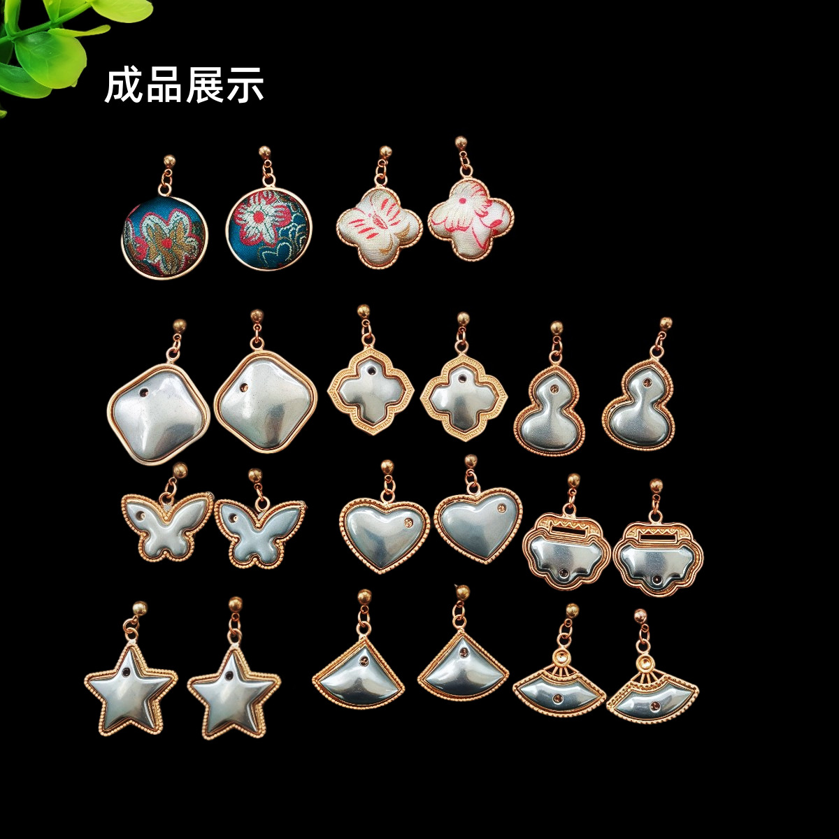 宋锦DIY耳环底托凹槽带盖新中式贴布艺耳坠耳饰材料配件批发