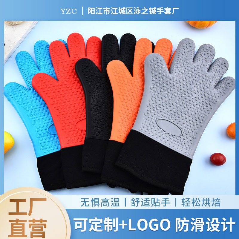 五本指シリコンゴム手袋電子レンジ滑り止め綿断熱手袋高温乾燥断熱手袋現物