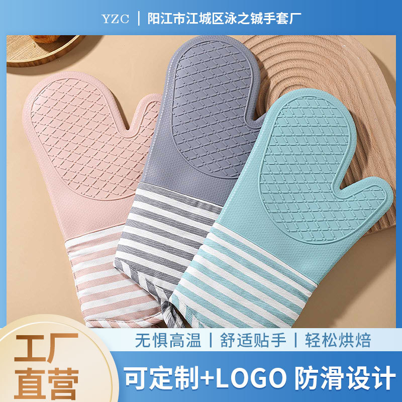 パーマ防止断熱シリコン平口手袋延長綿高温キッチン家庭用電子レンジ焙煎綿手袋