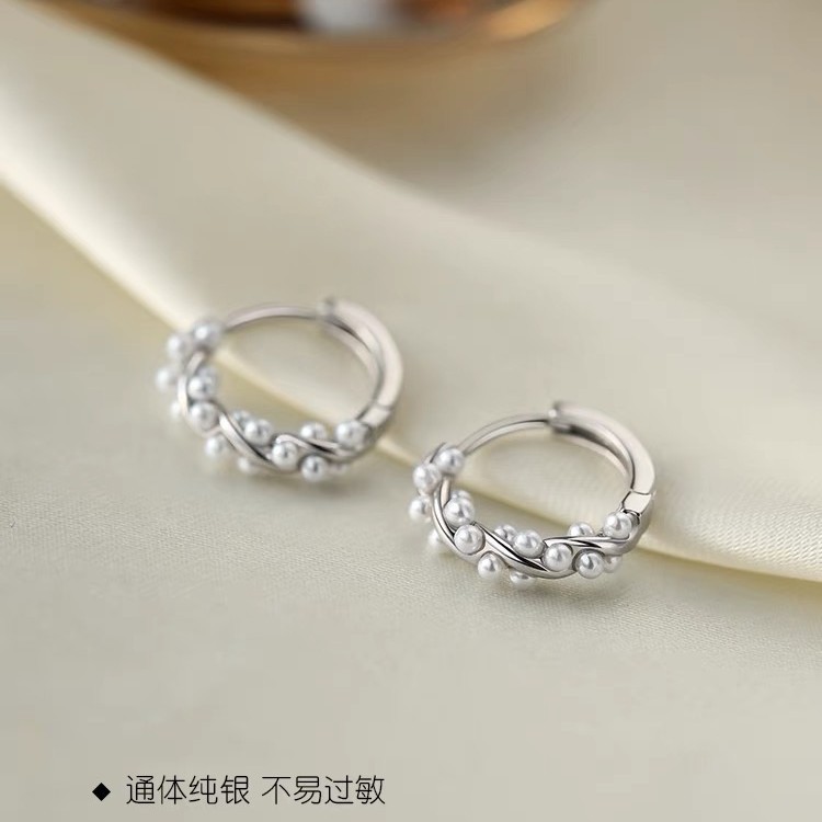 喜飾銀匠999純銀つる真珠イヤリング小香風耳輪高級感復古フランス巻き耳ボタン