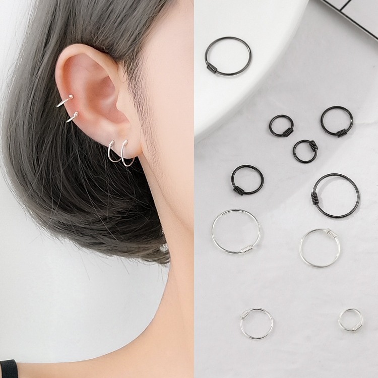 喜飾銀匠s999純銀イヤリング女性レトロミニ気質シンプル小耳輪耳洞耳骨輪耳飾り