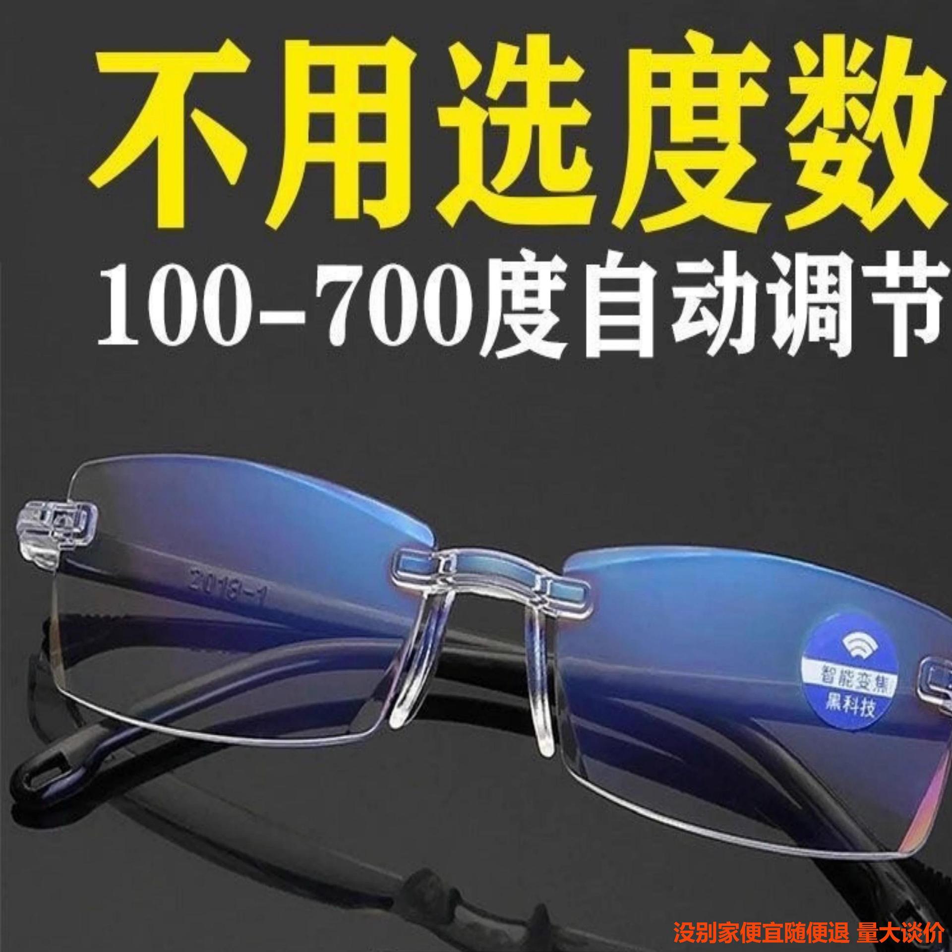 老眼鏡高級自動調節度数知能ズーム無枠ハイビジョン模造水晶老眼鏡ブルーレイ防止