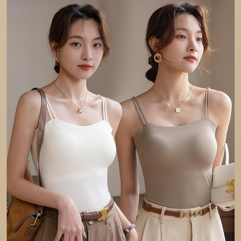 美背连体杯无痕锦纶美背吊带背心女隐形内衣带胸垫外穿打底上衣女